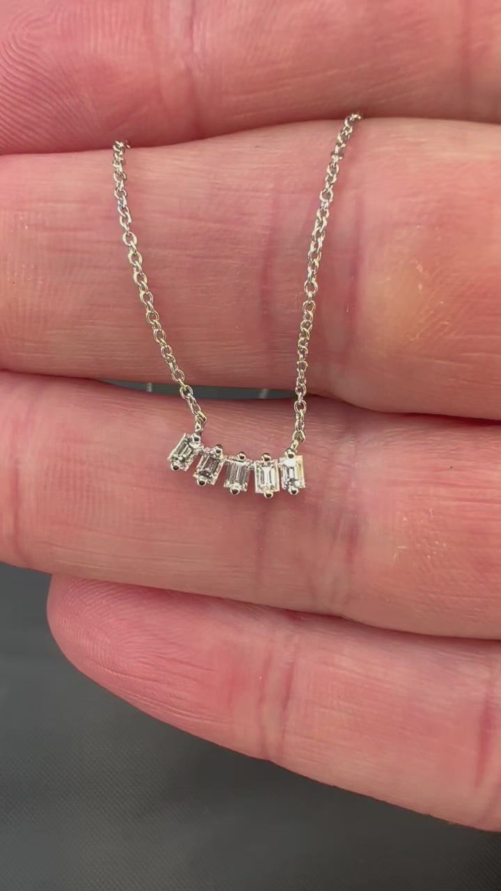 14k Yellow Gold Baguette Diamond Bar Necklace