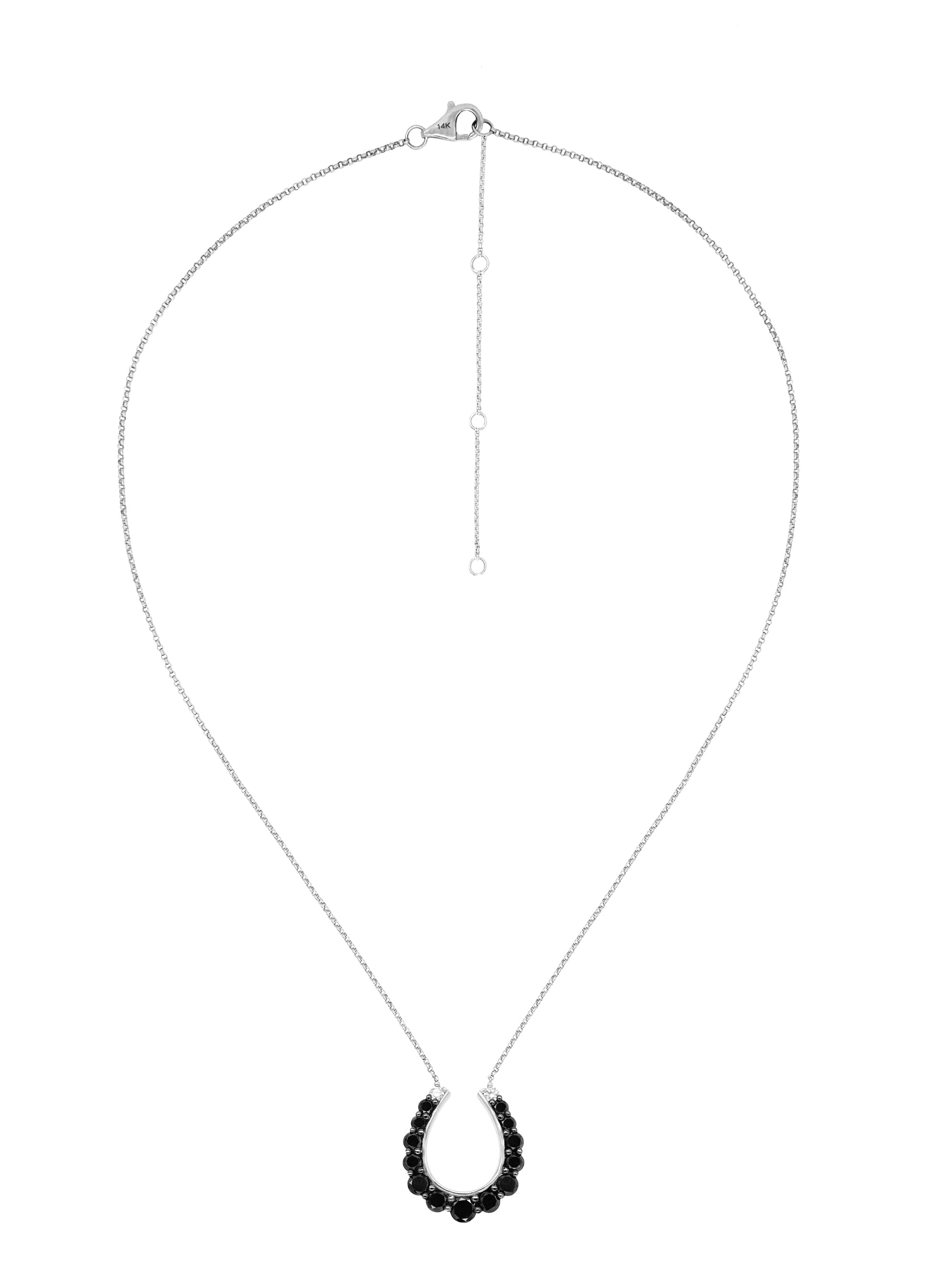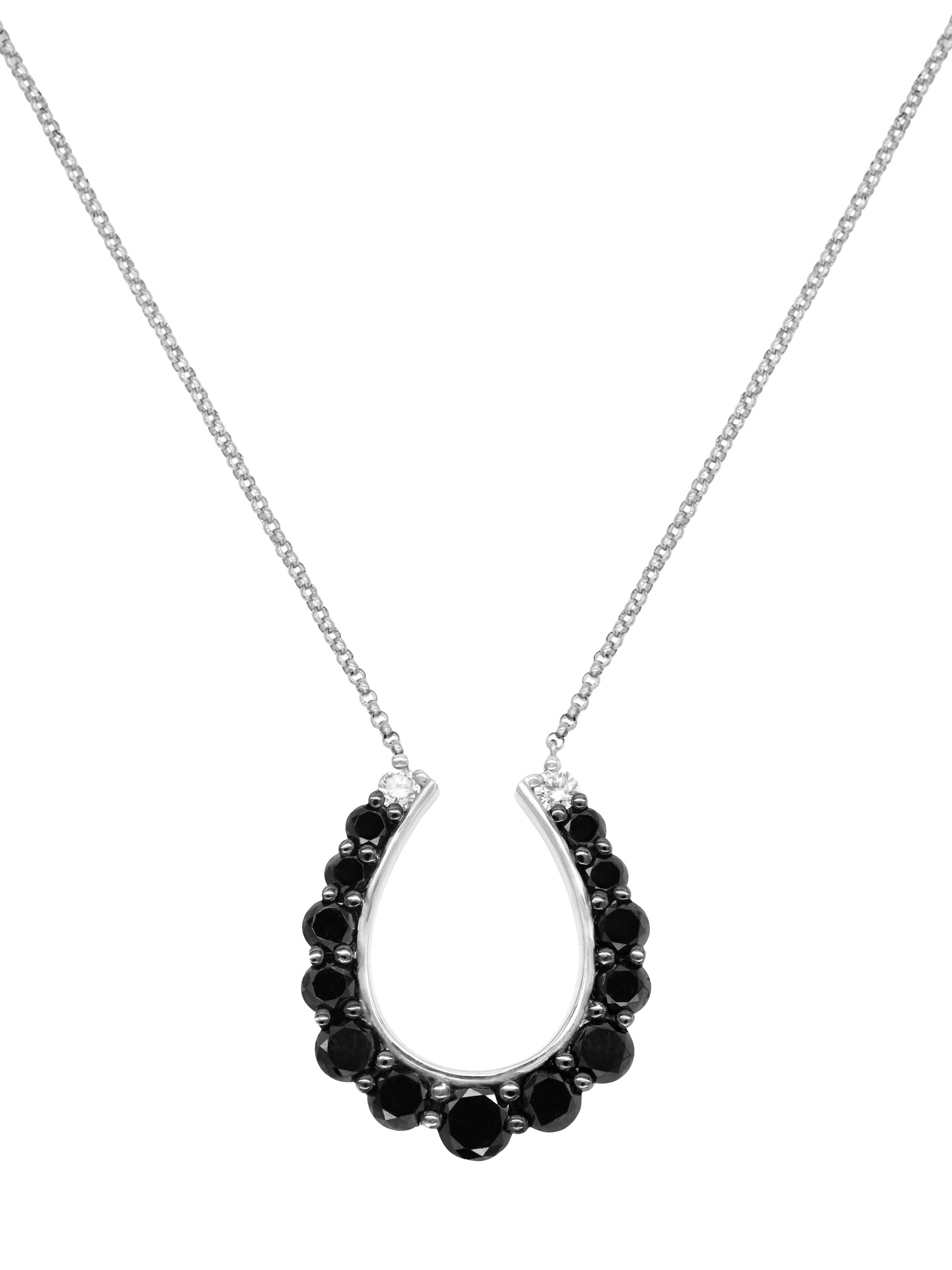 14k White Gold Black Diamond Large Horseshoe Necklace
