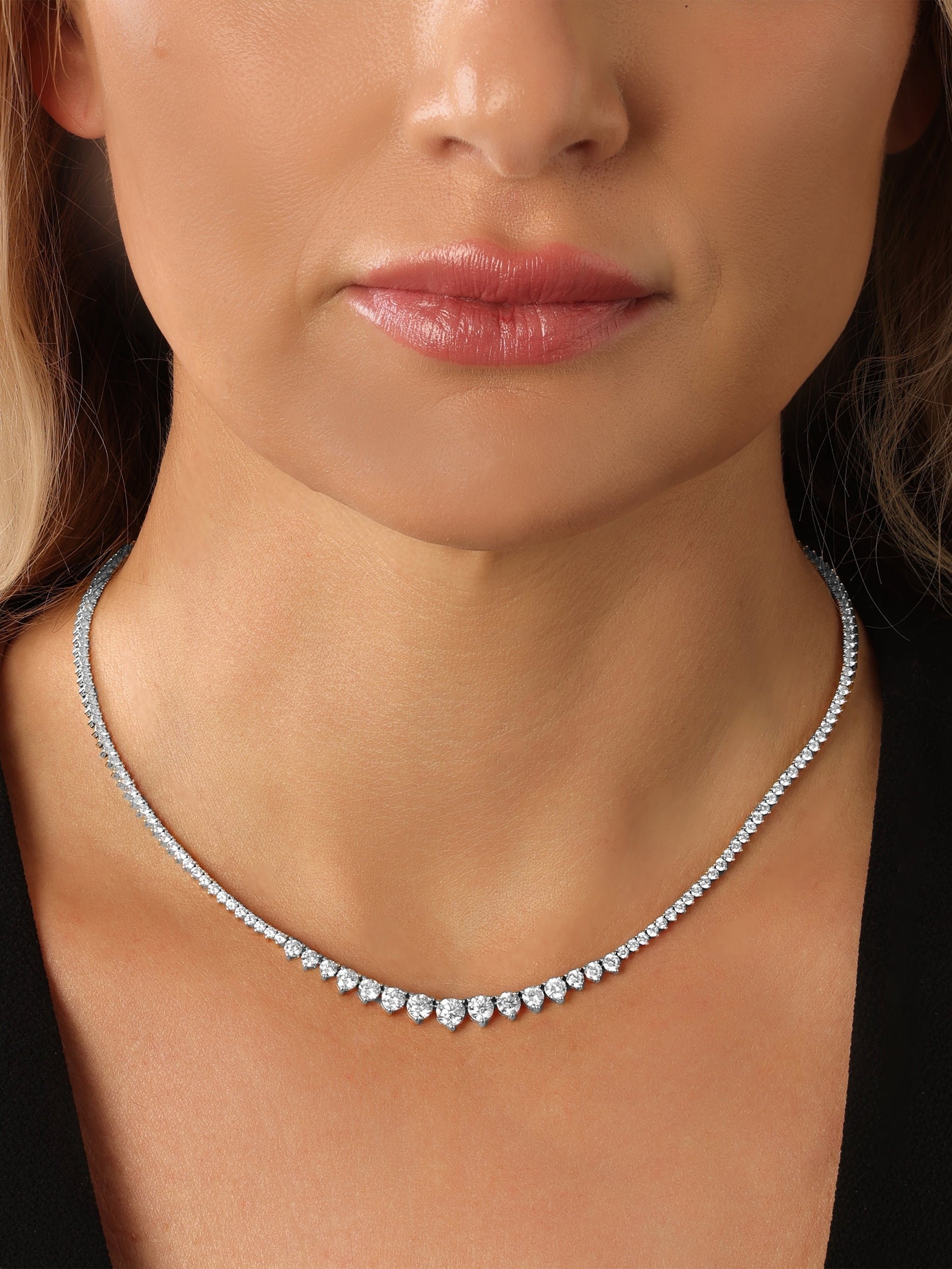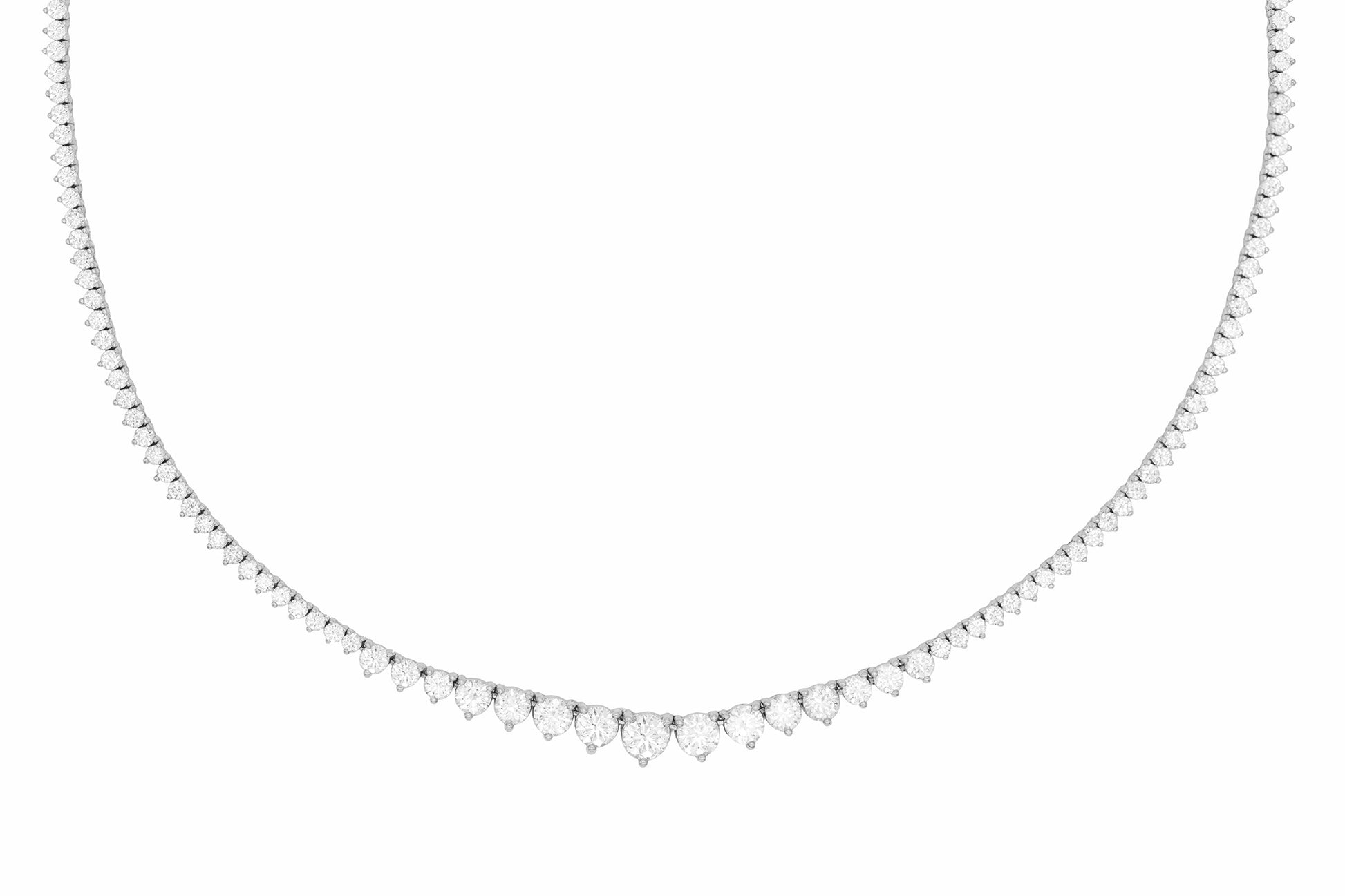 14k White Gold Diamond 3 Prong 16 inch Graduated Tennis Necklace