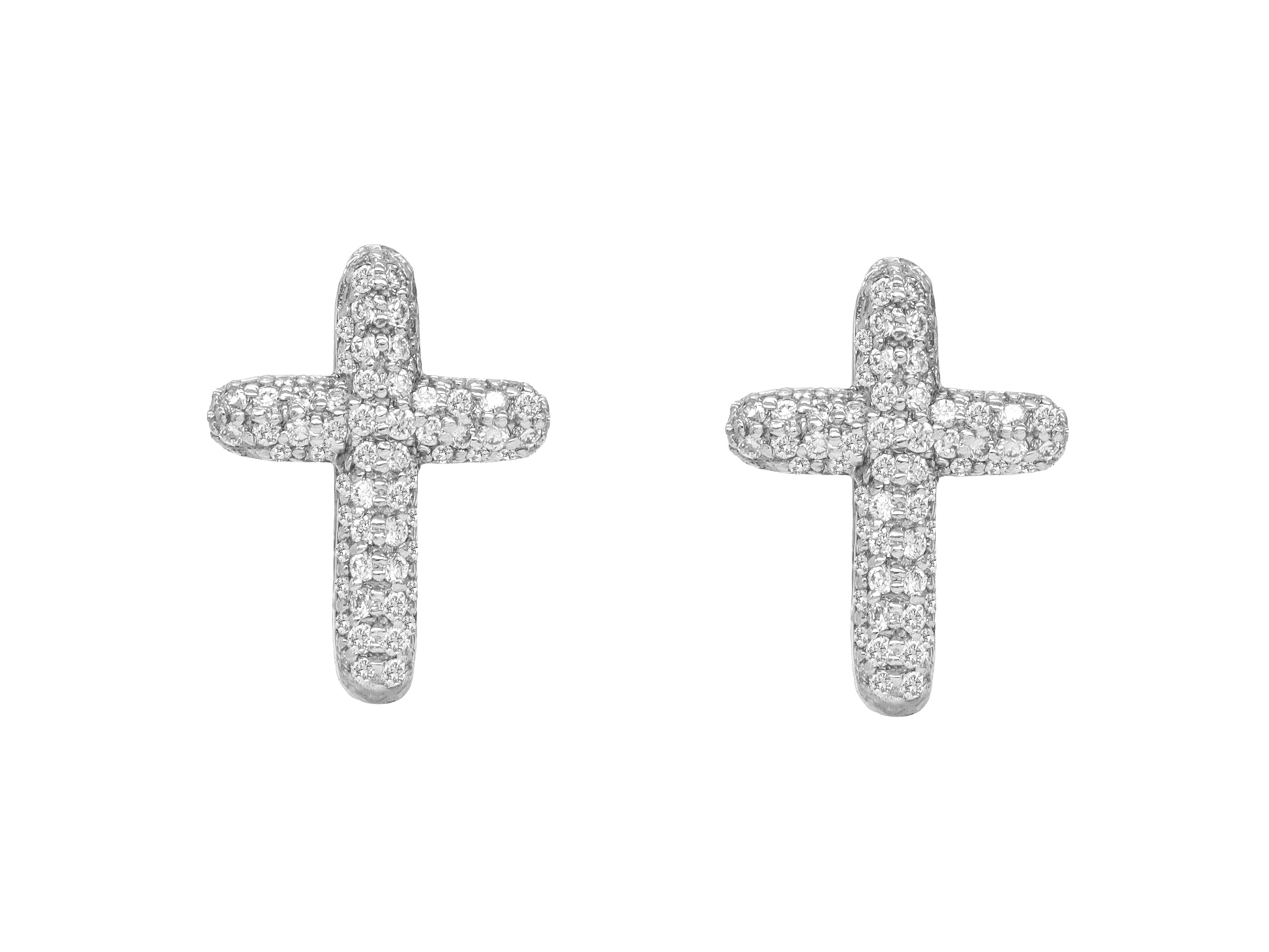 14k White Gold Diamond Bubble Pave Cross Earrings