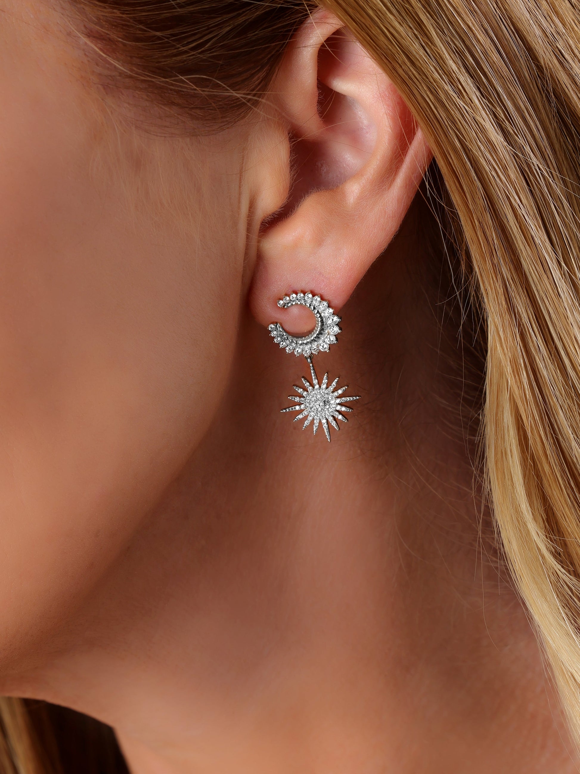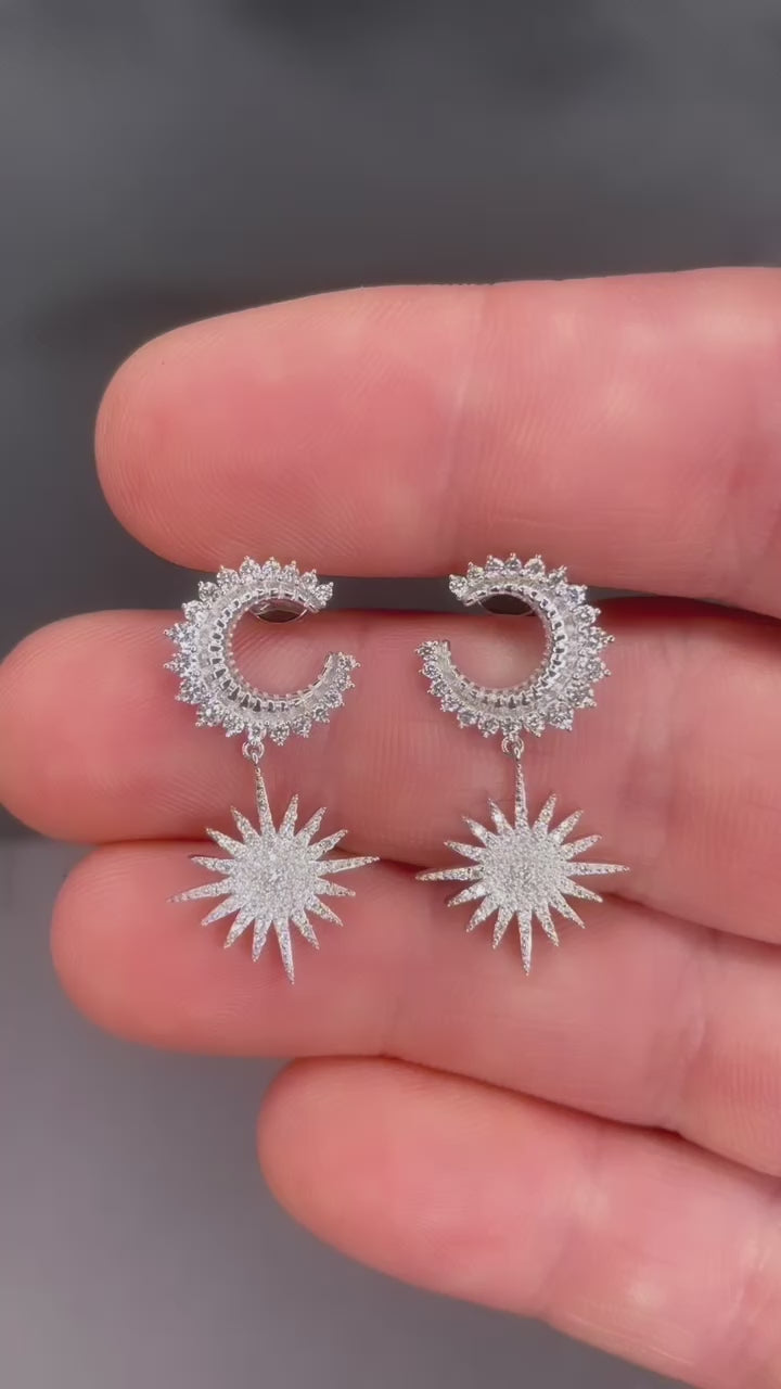 14k White Gold Diamond Celestial Moon and Star Earrings