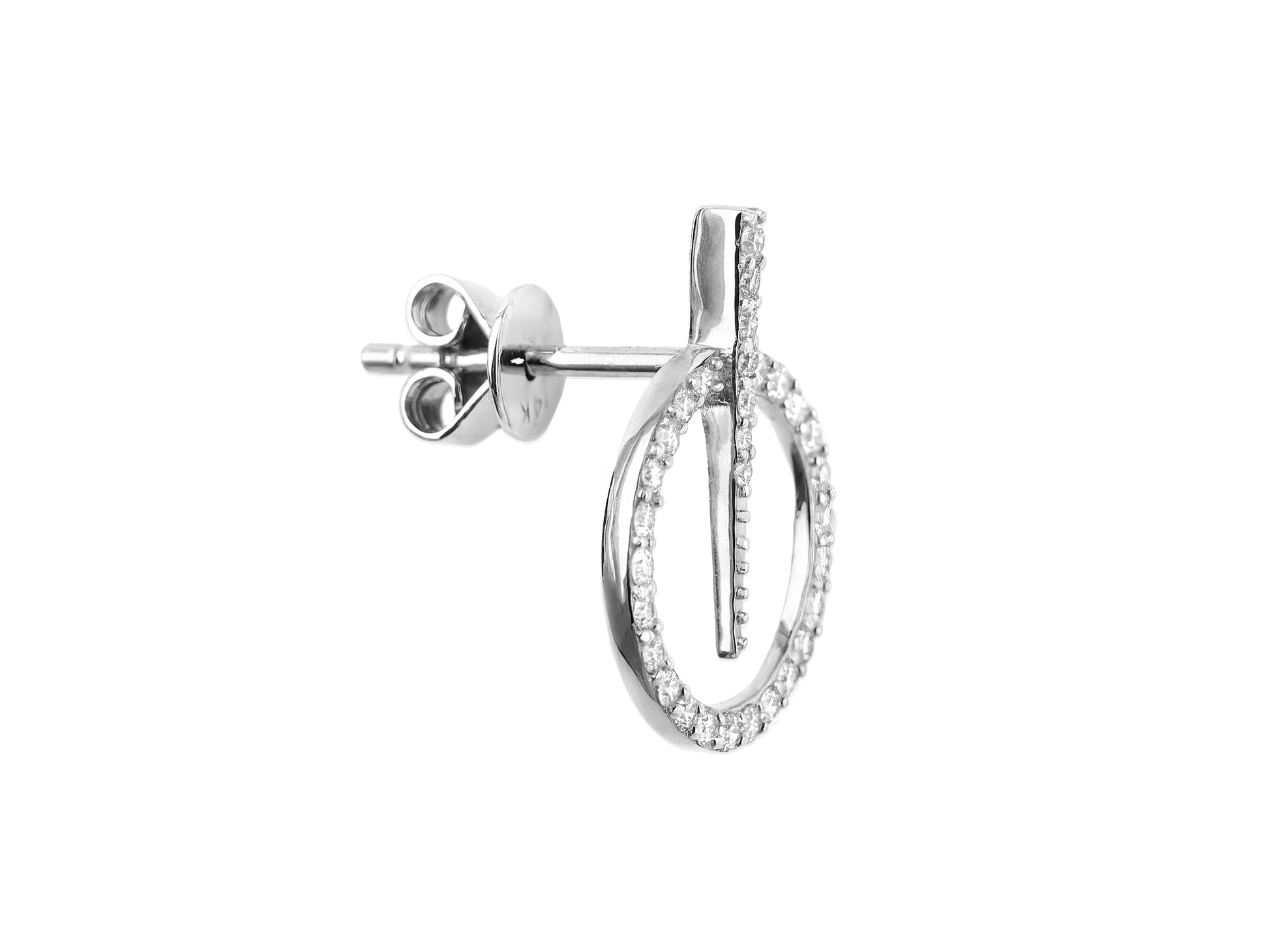 14k White Gold Diamond Circle and Dagger Earrings