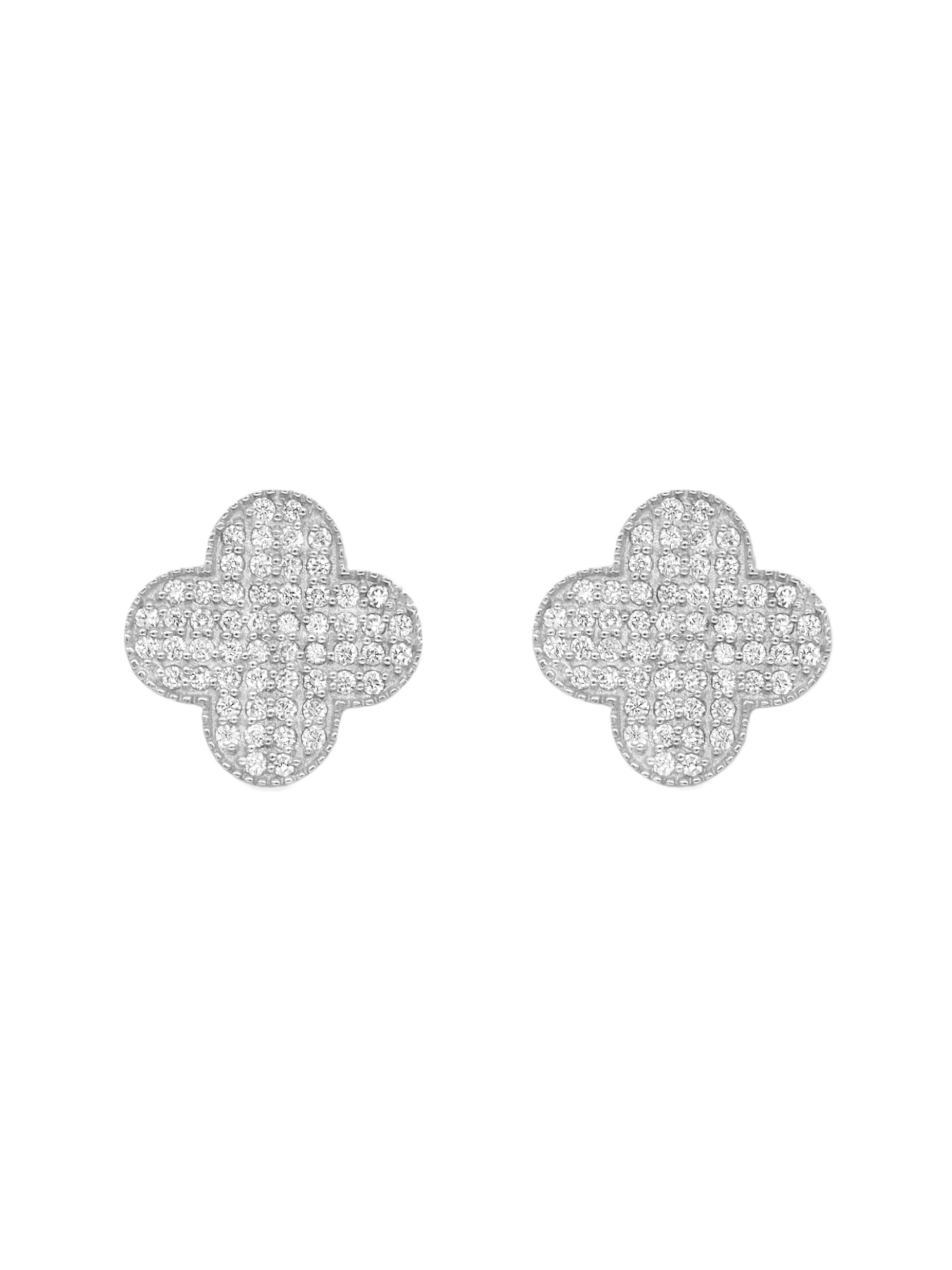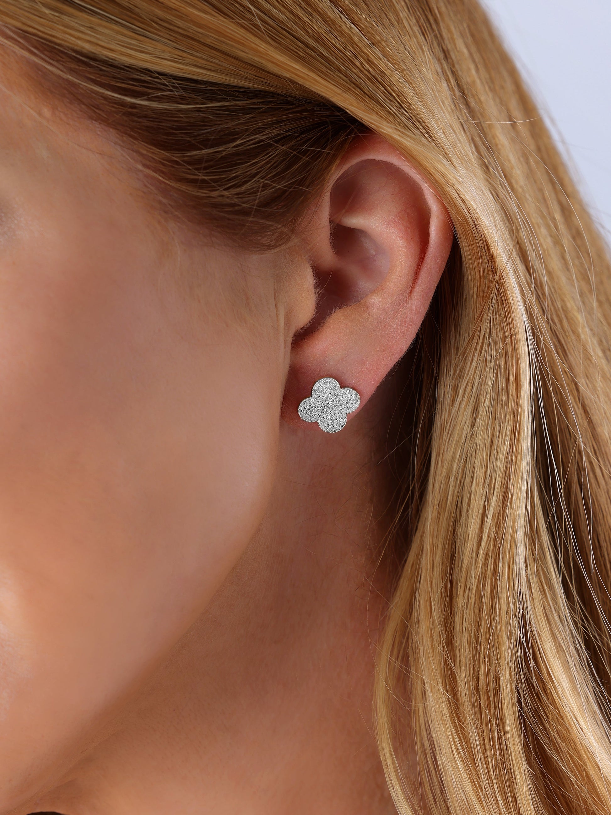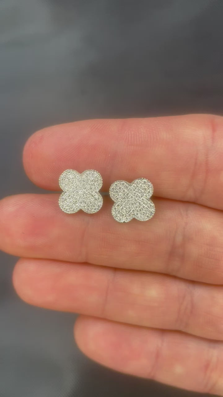 14k White Gold Diamond Clover Earrings