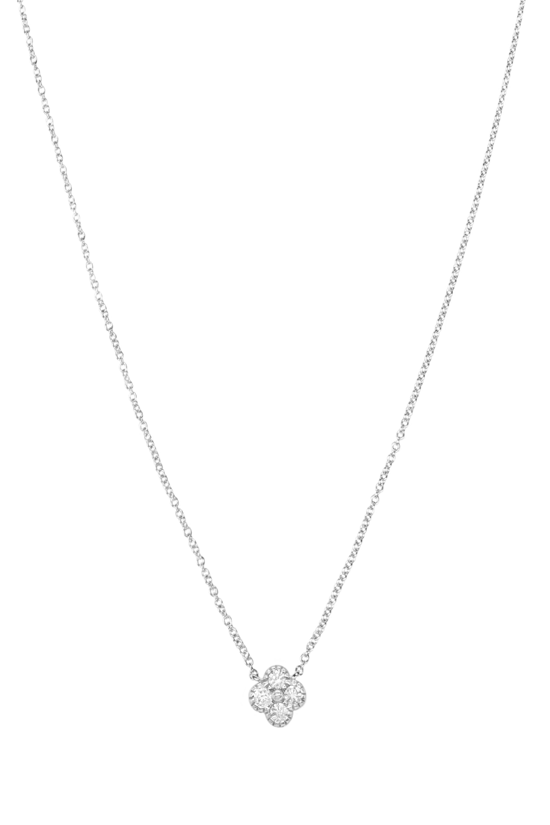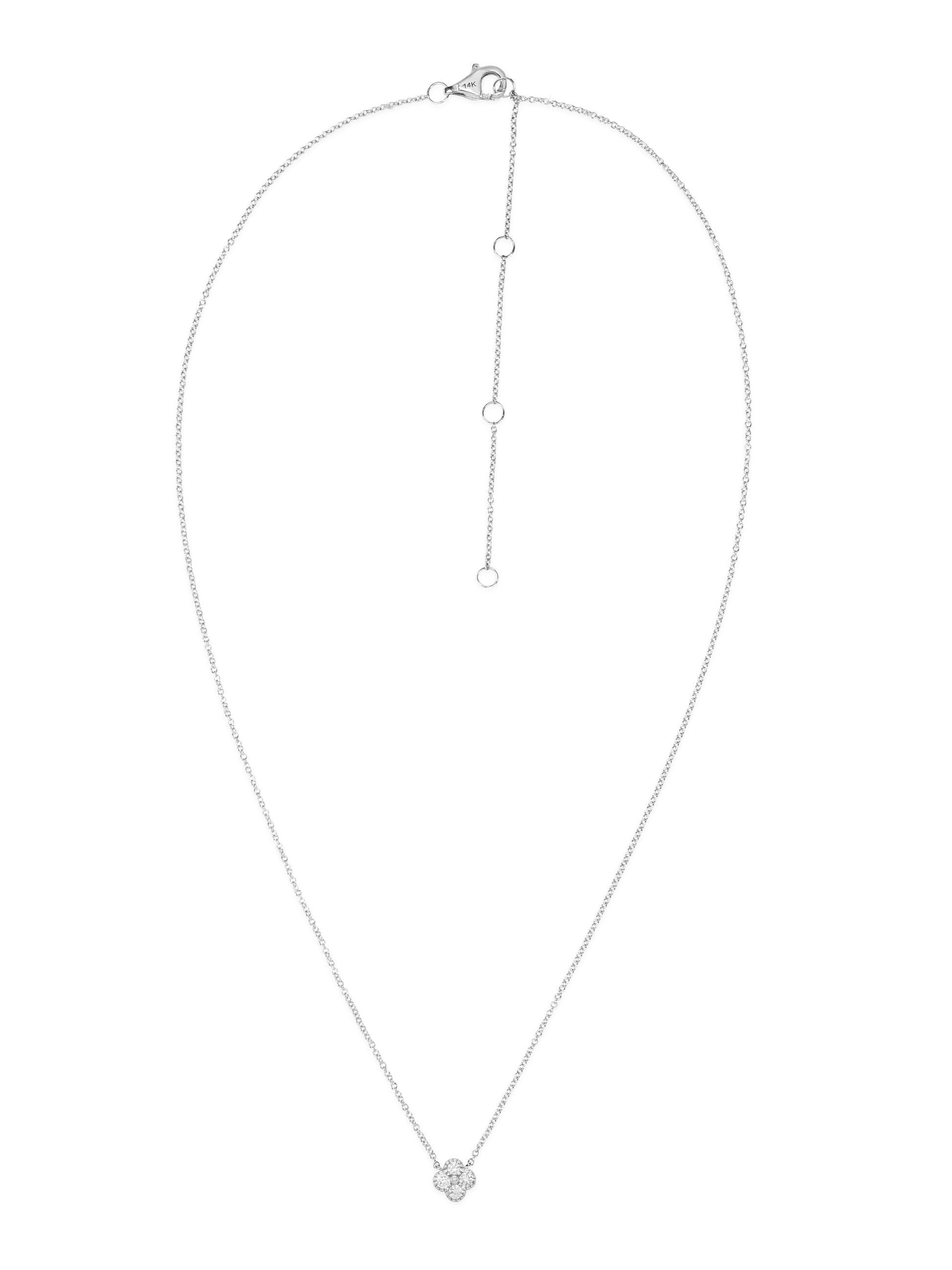 14k White Diamond Clover Necklace