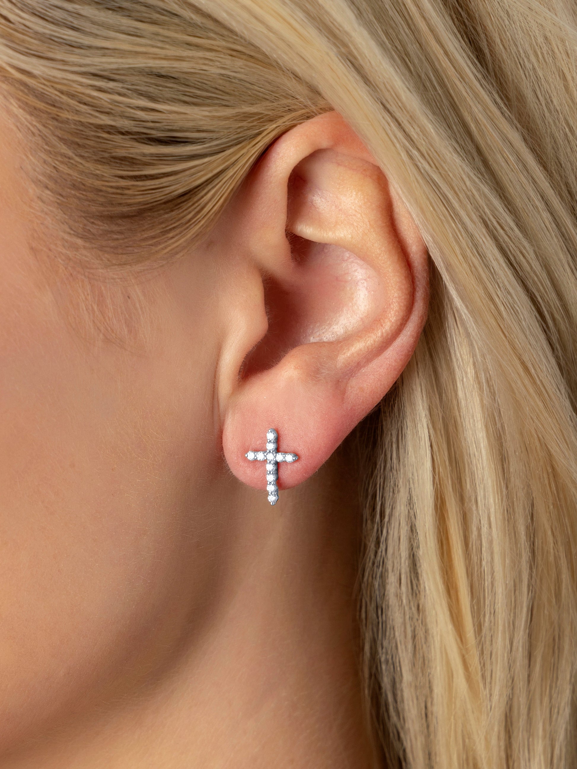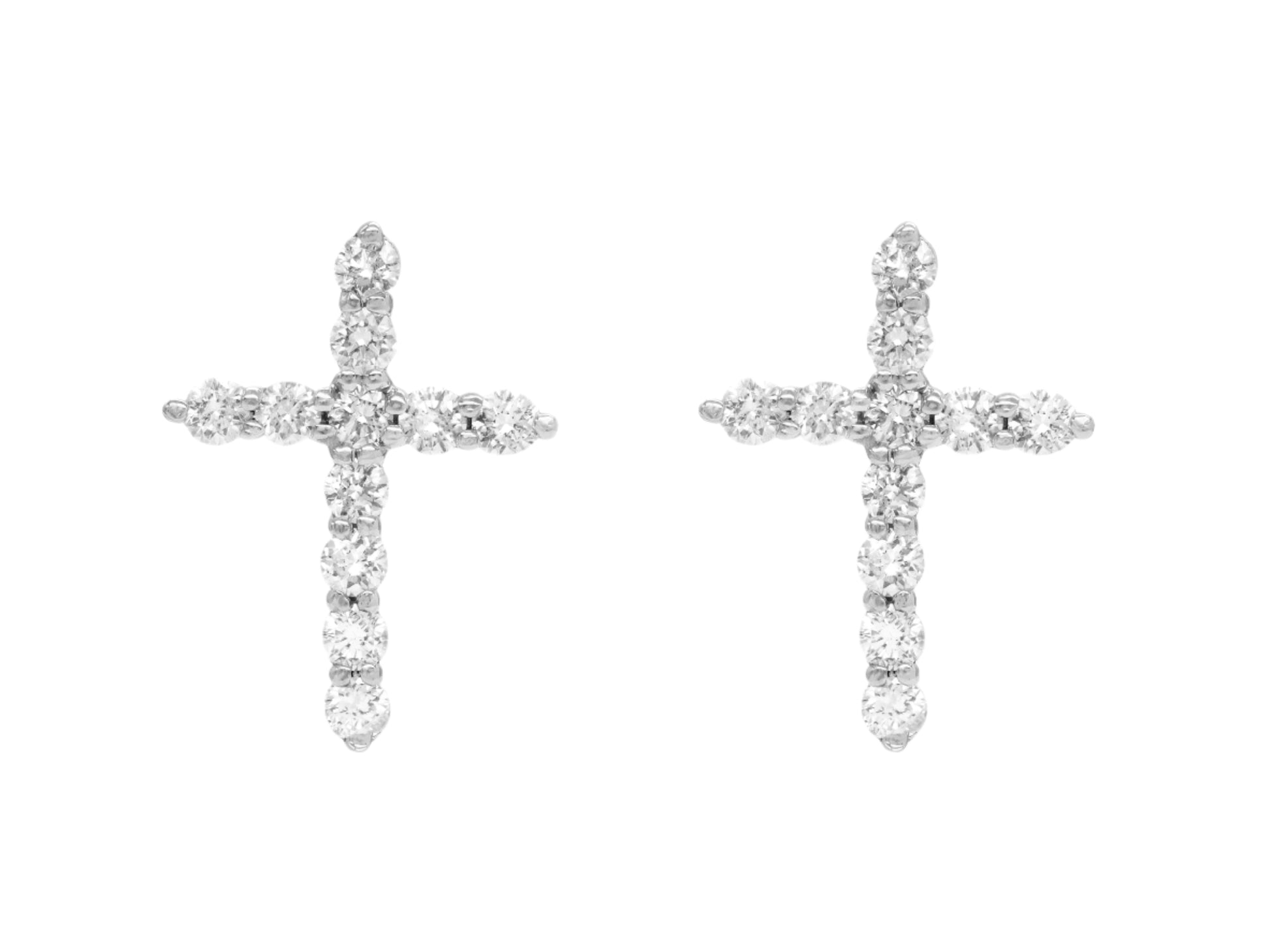 14k White Gold Diamond Cross Earrings