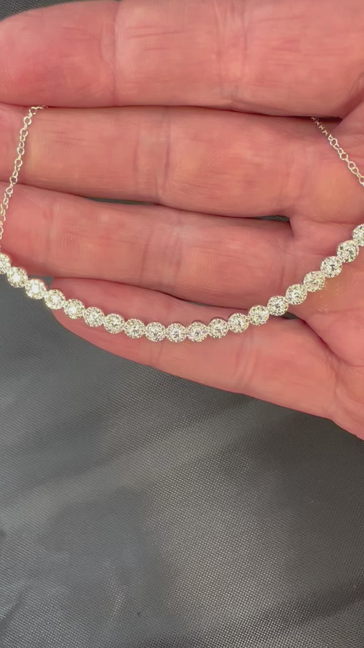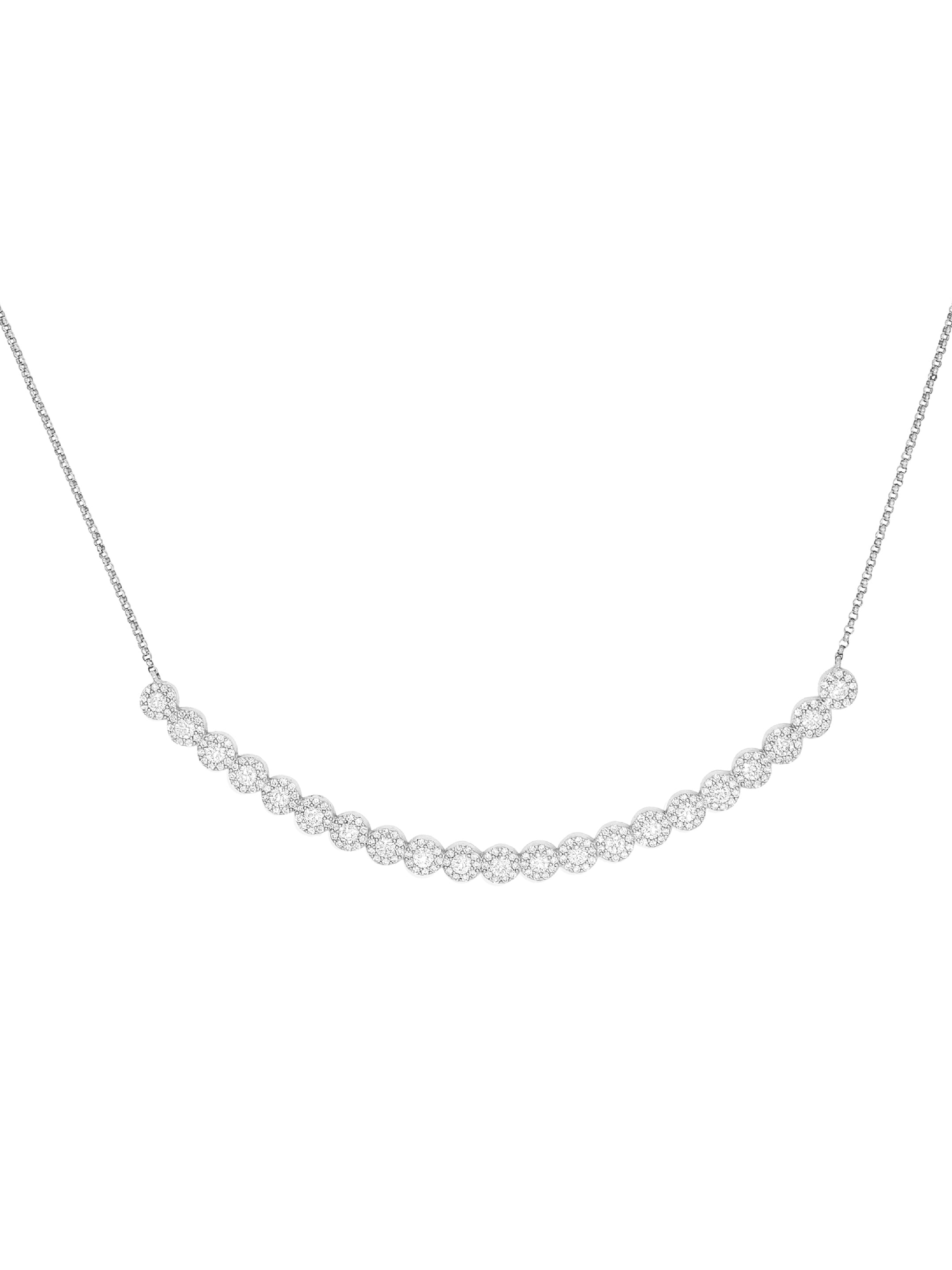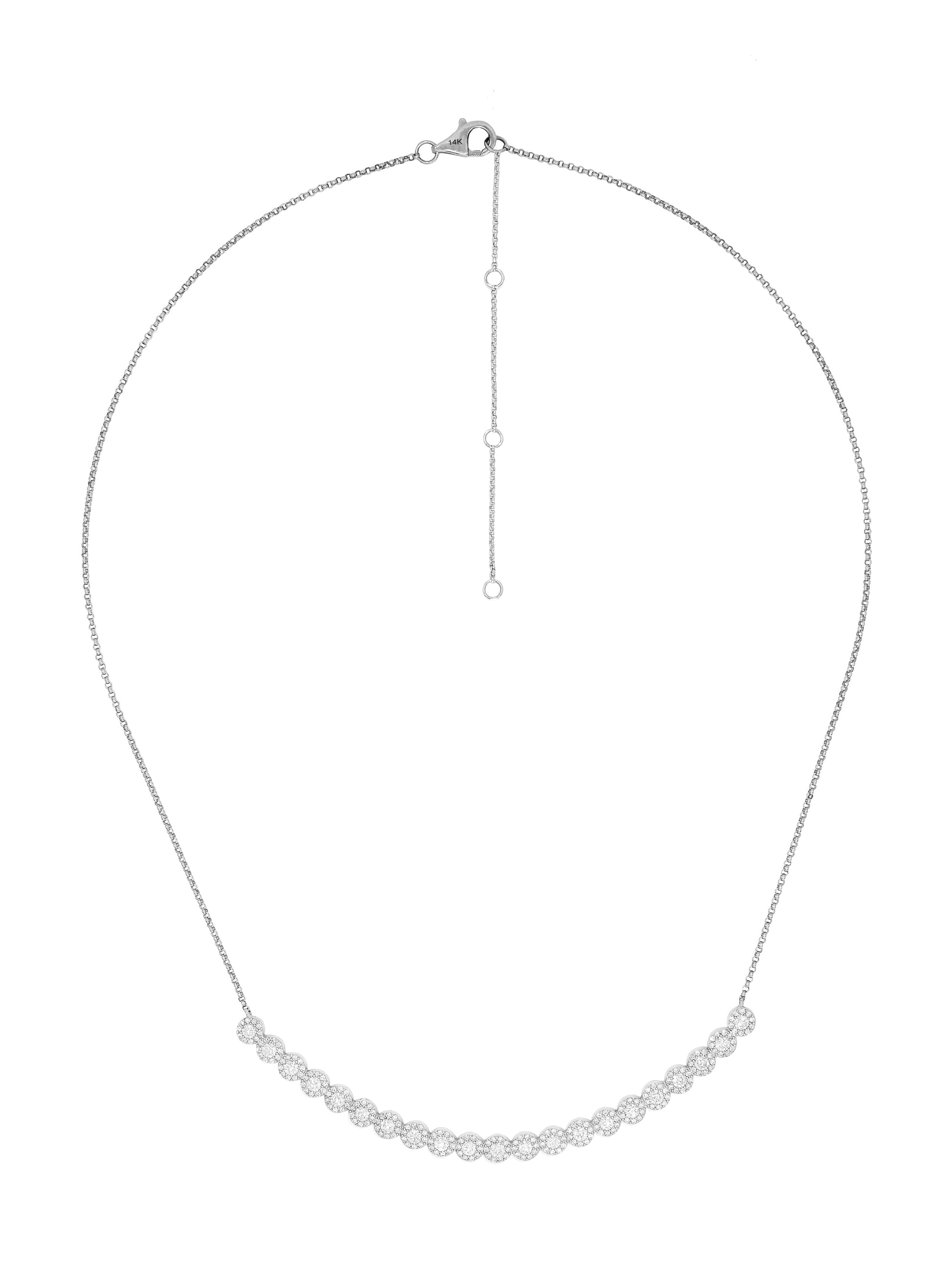 14k White Gold Diamond Curved Halo Bar Necklace