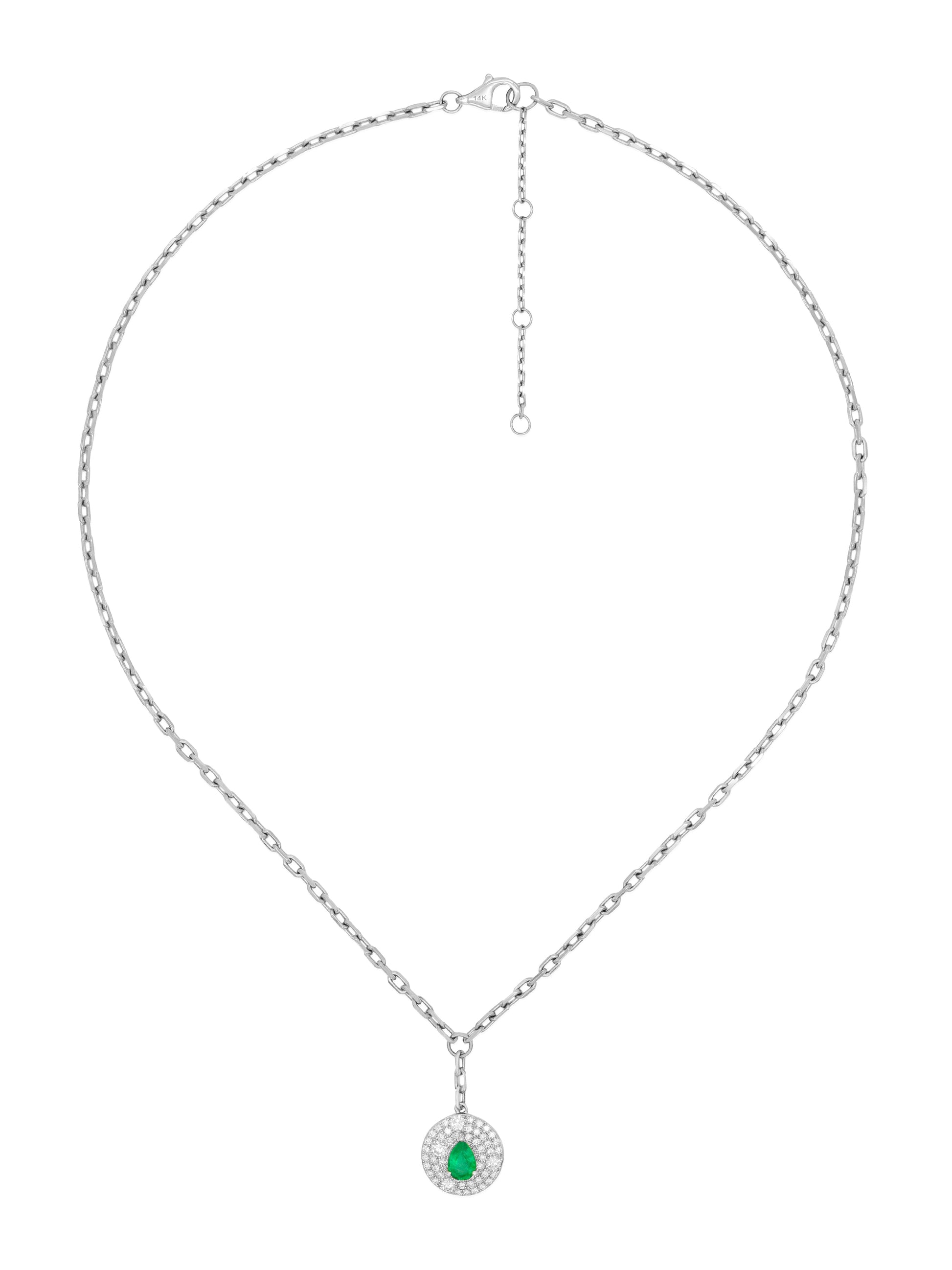 14k White Gold Diamond/Emerald Drop Necklace