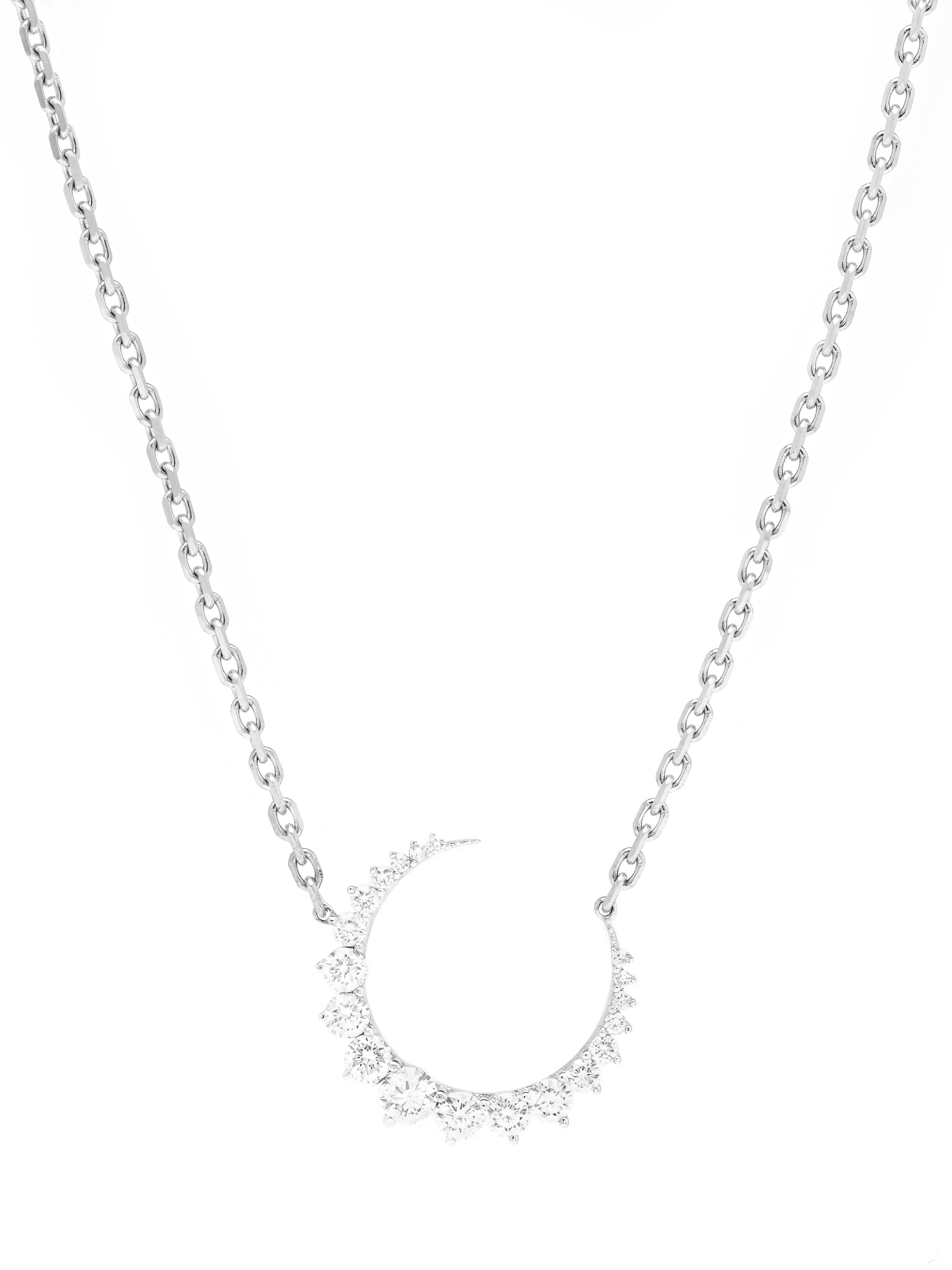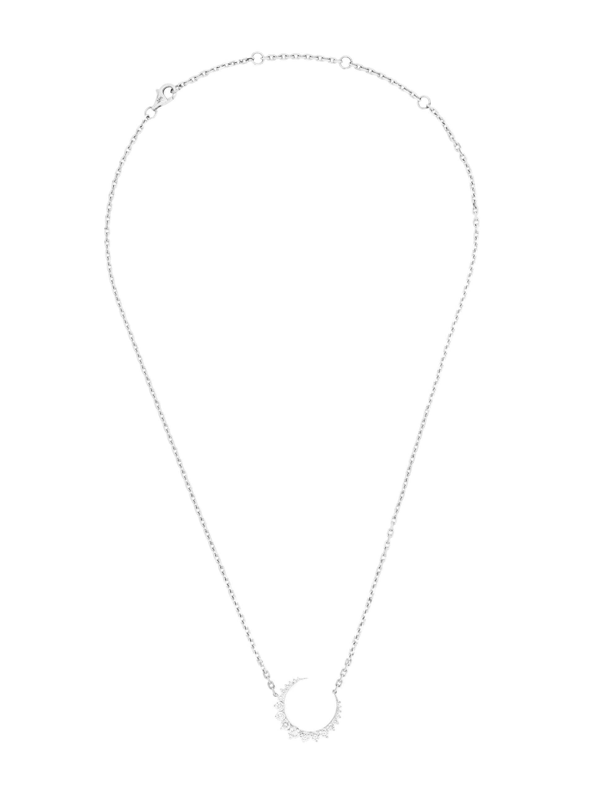 14k White Gold Diamond Half Moon Necklace