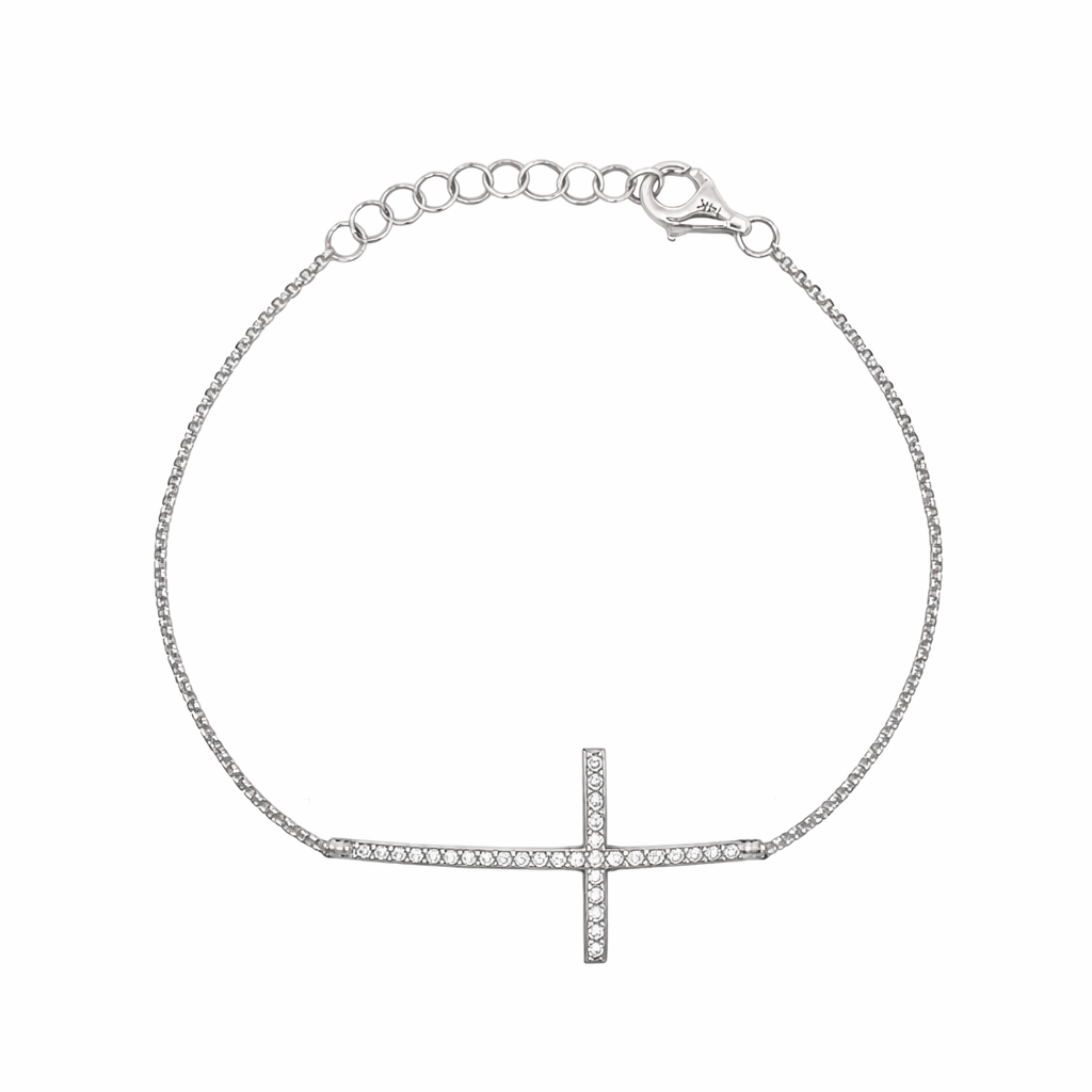 14k White Gold Diamond Large Cross Bracelet