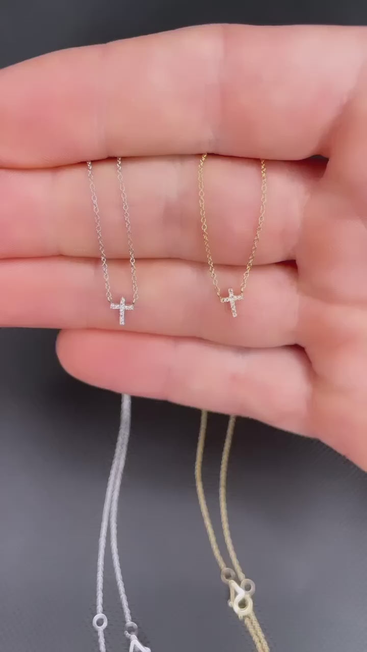 14k White Gold Diamond Mini Cross Necklace