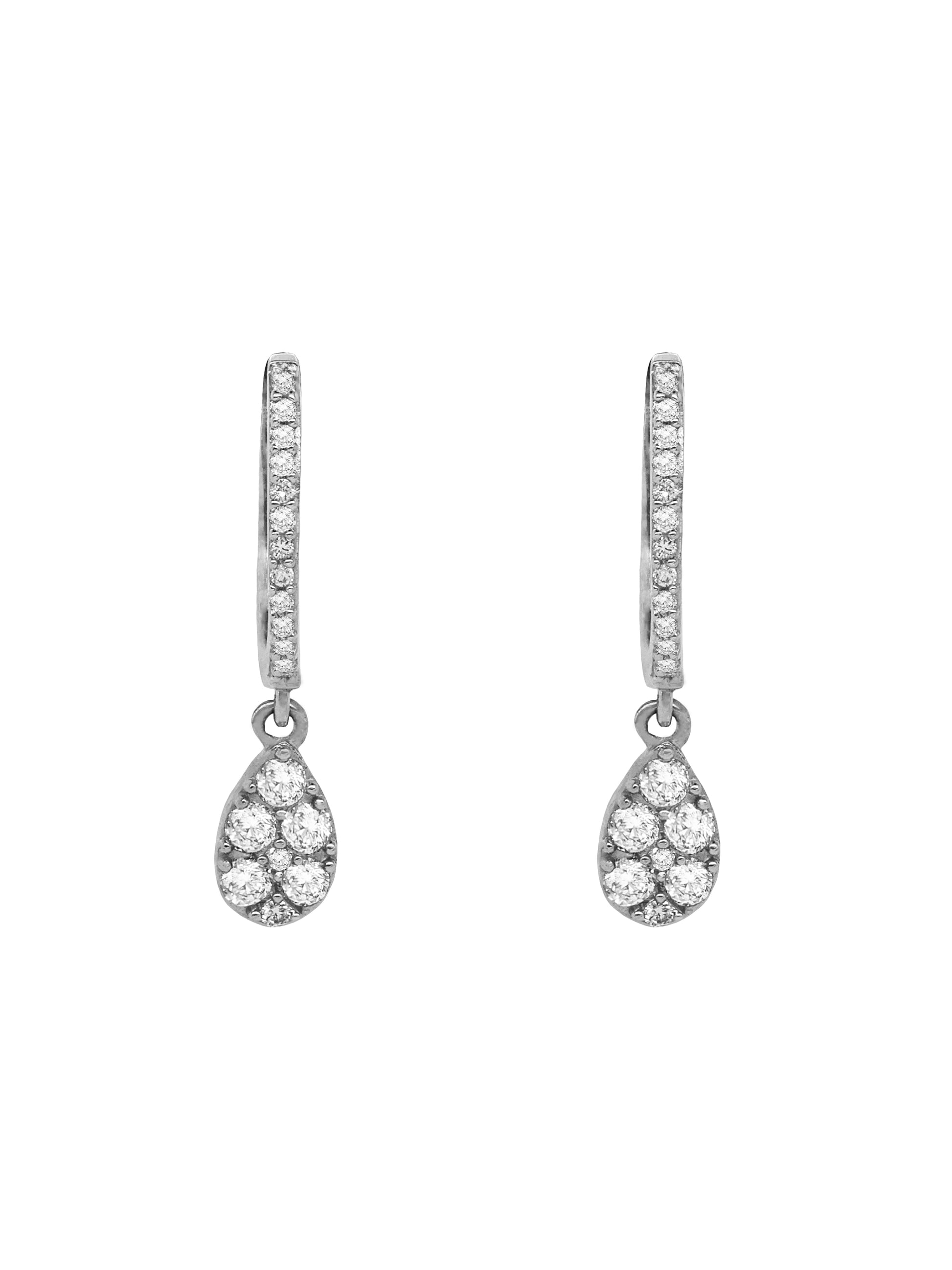 14k White Gold Diamond Pear Dangle Huggie Earrings