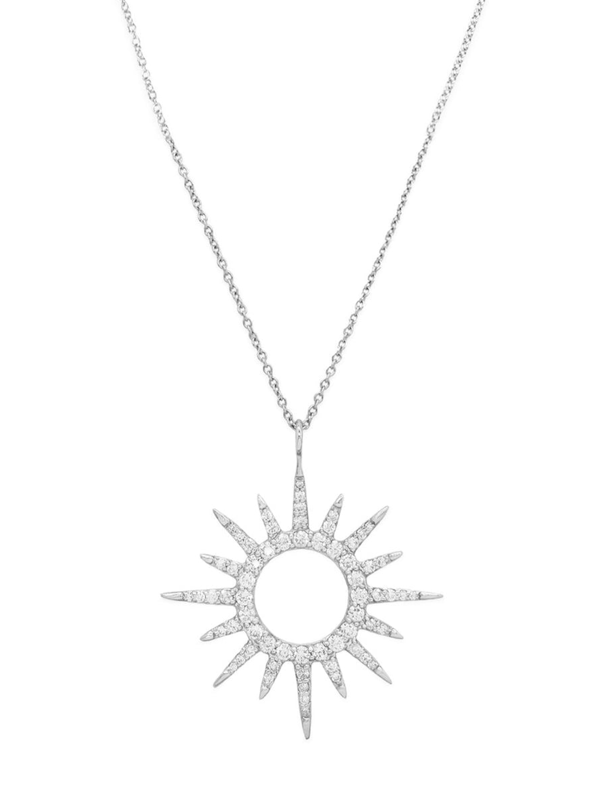 14k White Gold Diamond Sunburst Necklace