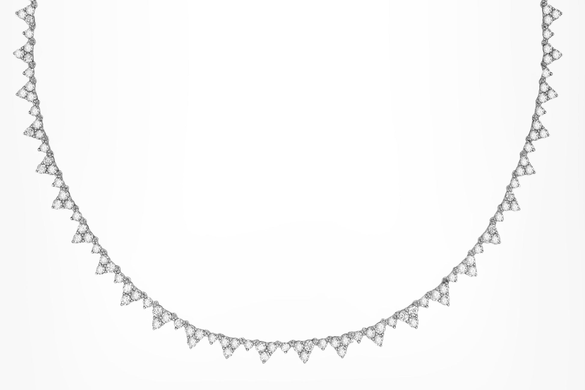 14k White Gold Diamond Triangle Cluster Tennis Necklace