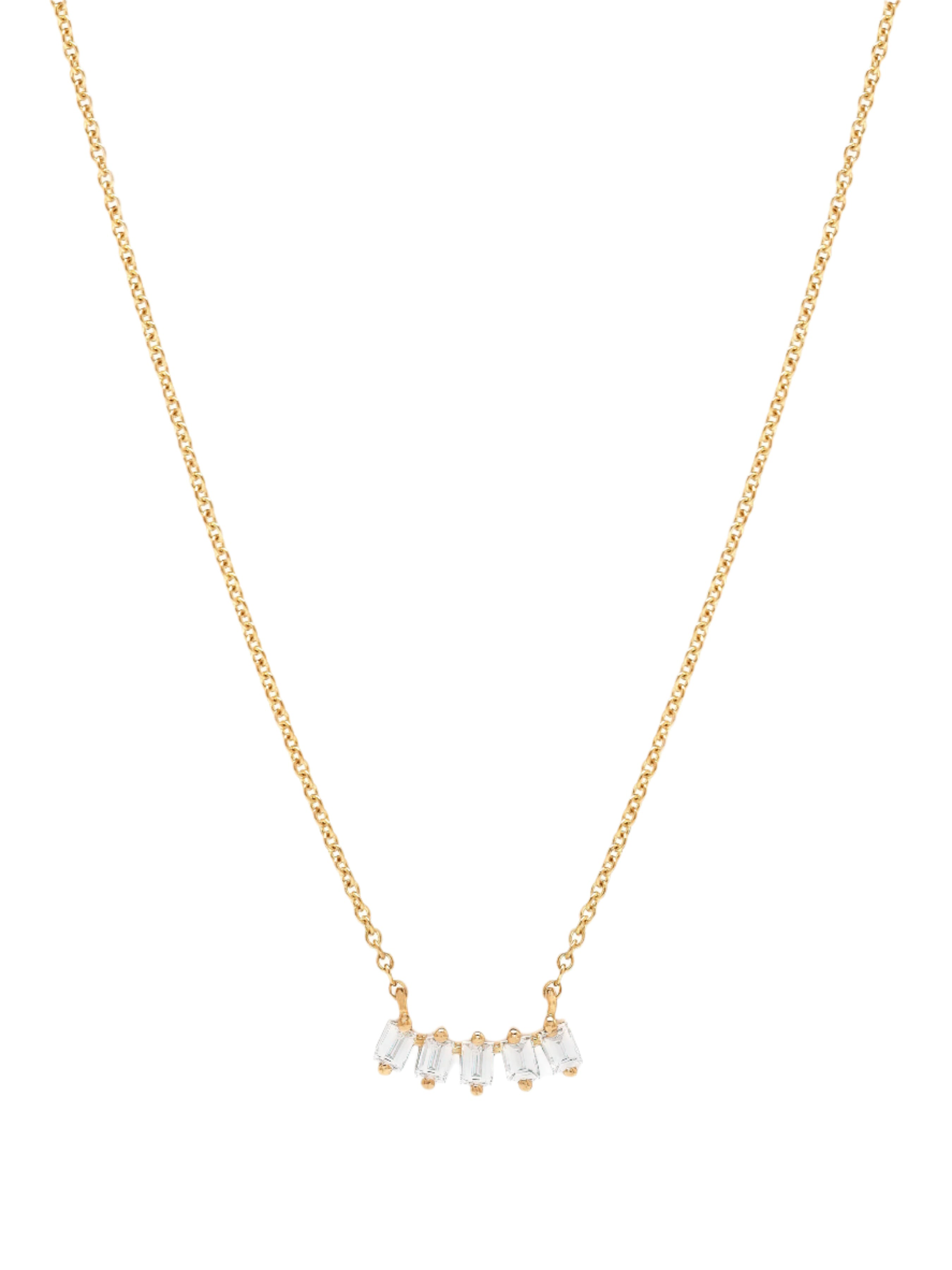 14k Yellow Gold Baguette Diamond Bar Necklace