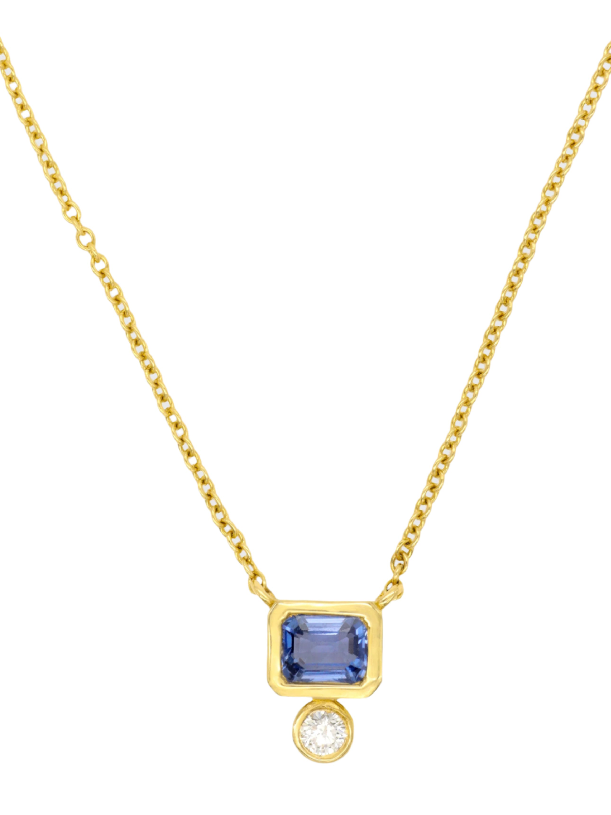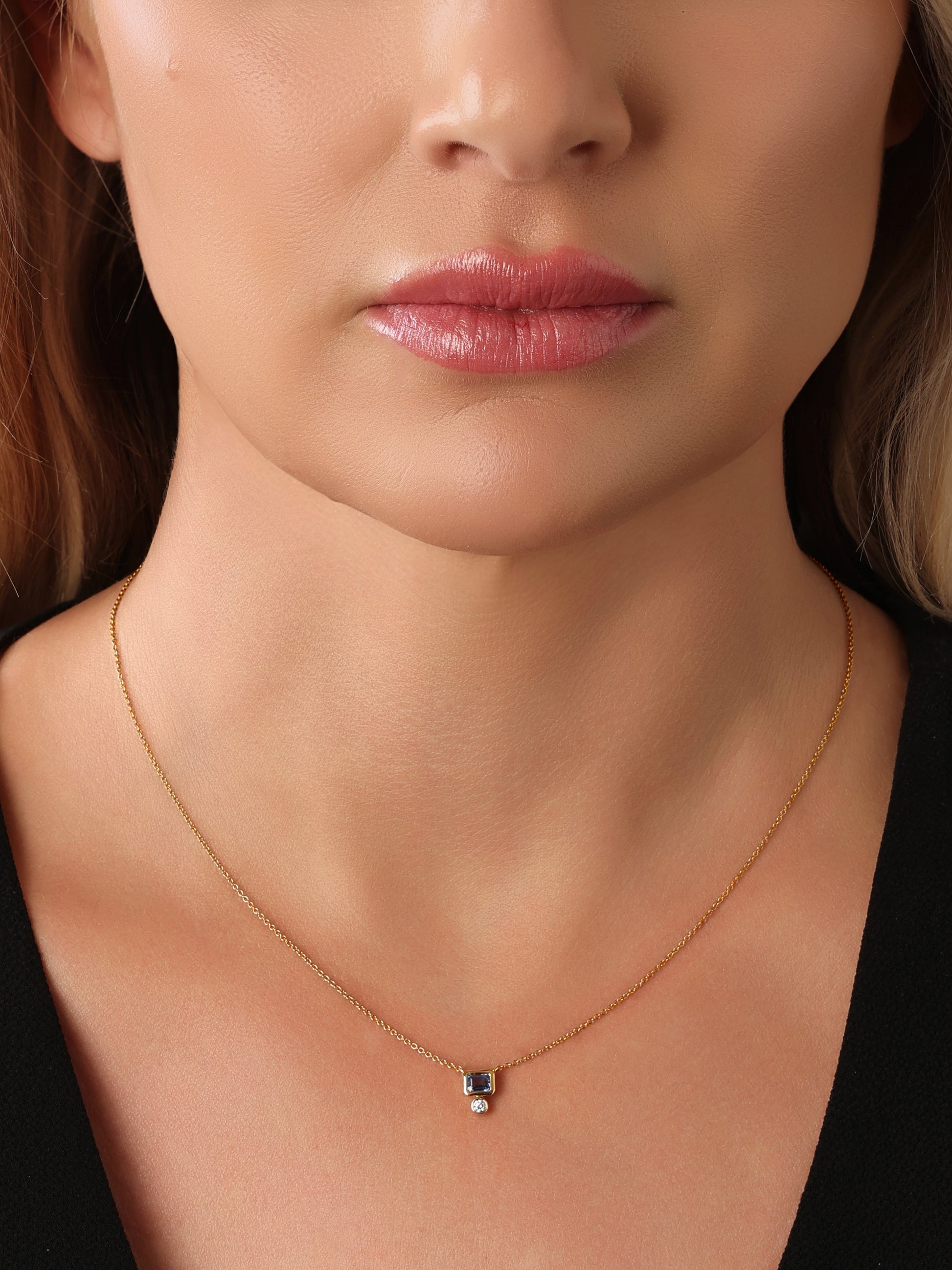 14k Yellow Gold Blue Sapphire/Diamond Necklace