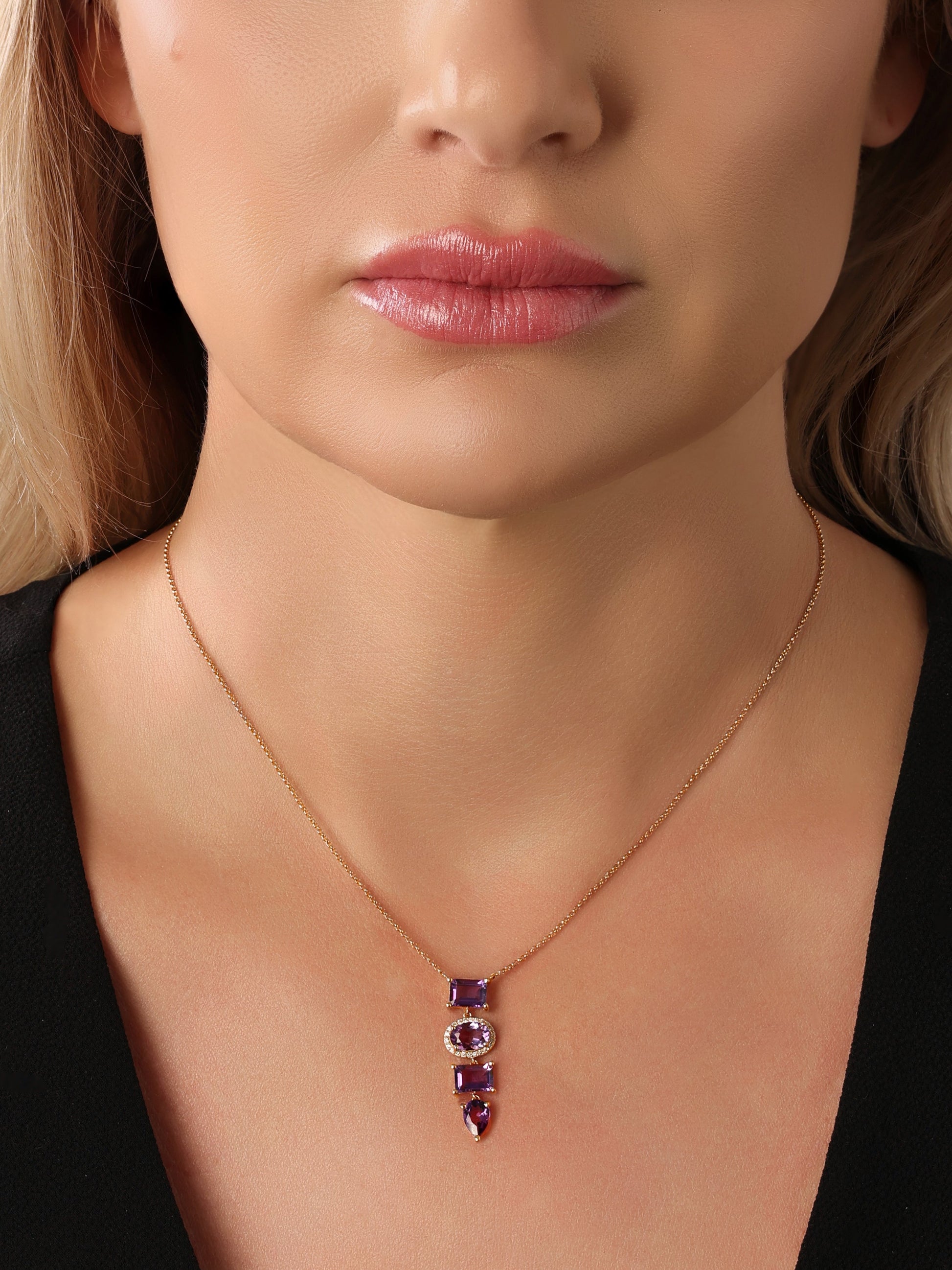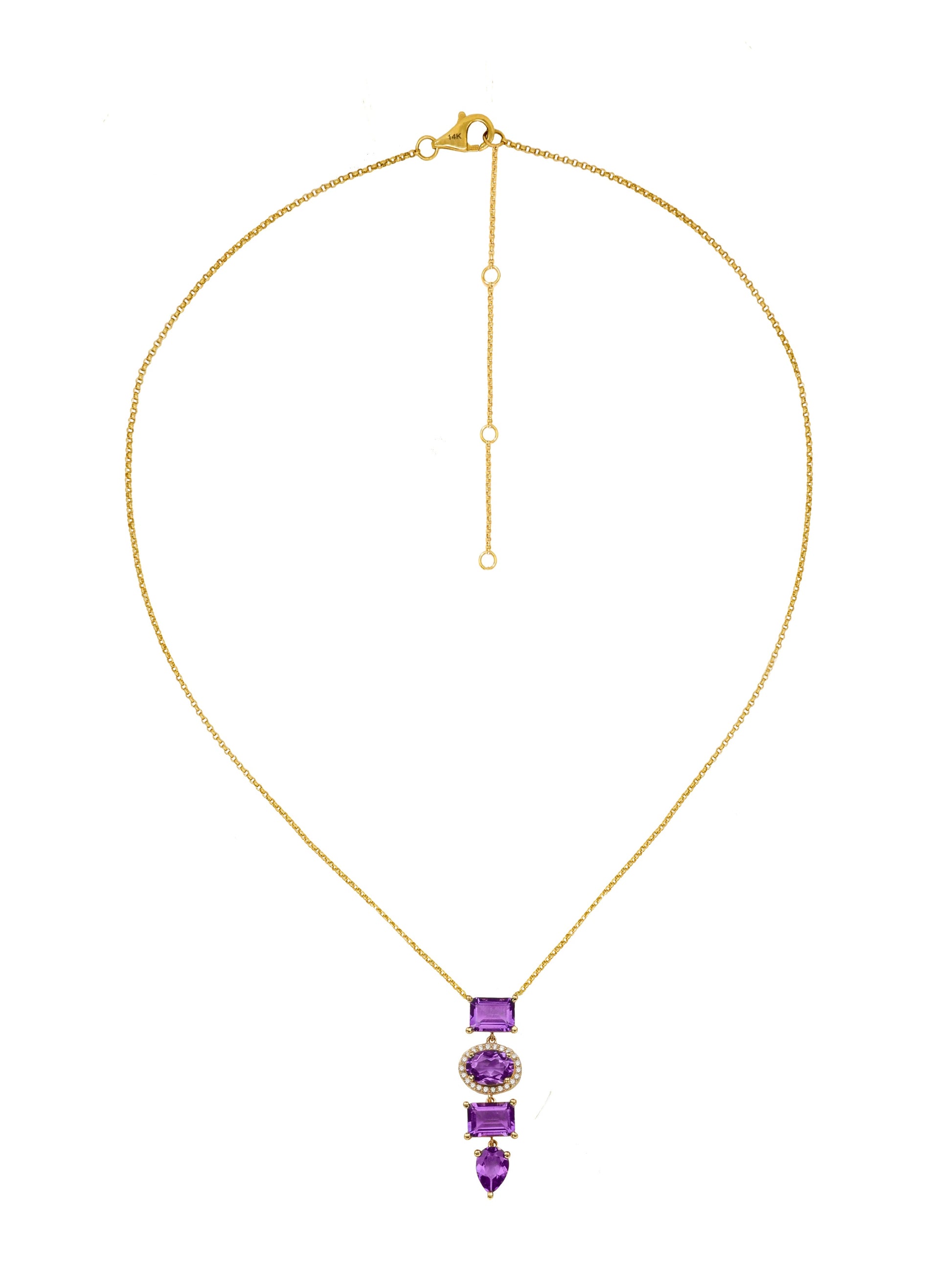 14k Yellow Gold Diamond/Amethyst Drop Necklace