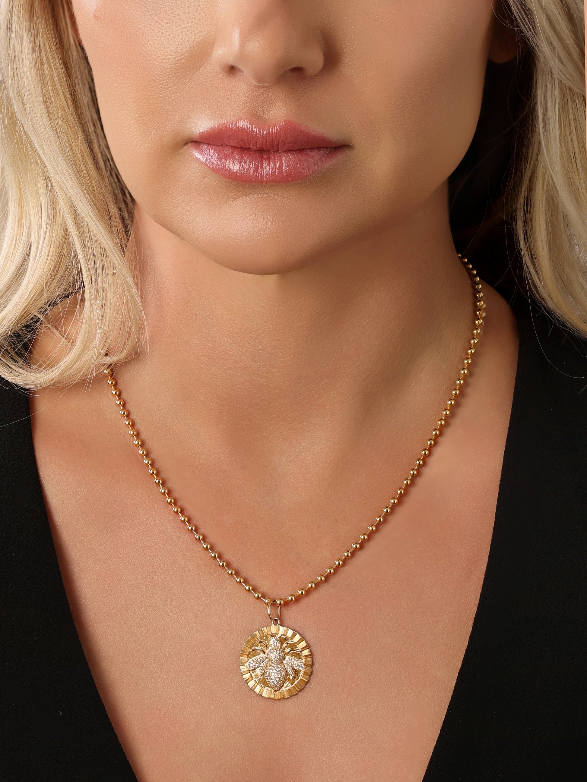 14k Yellow Gold Diamond Bumblebee Coin Charm