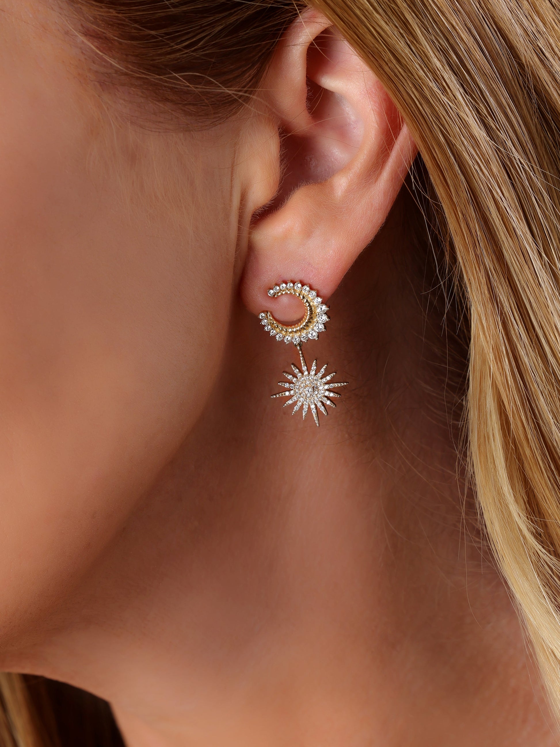 14k Yellow Gold Diamond Celestial Moon and Star Earrings