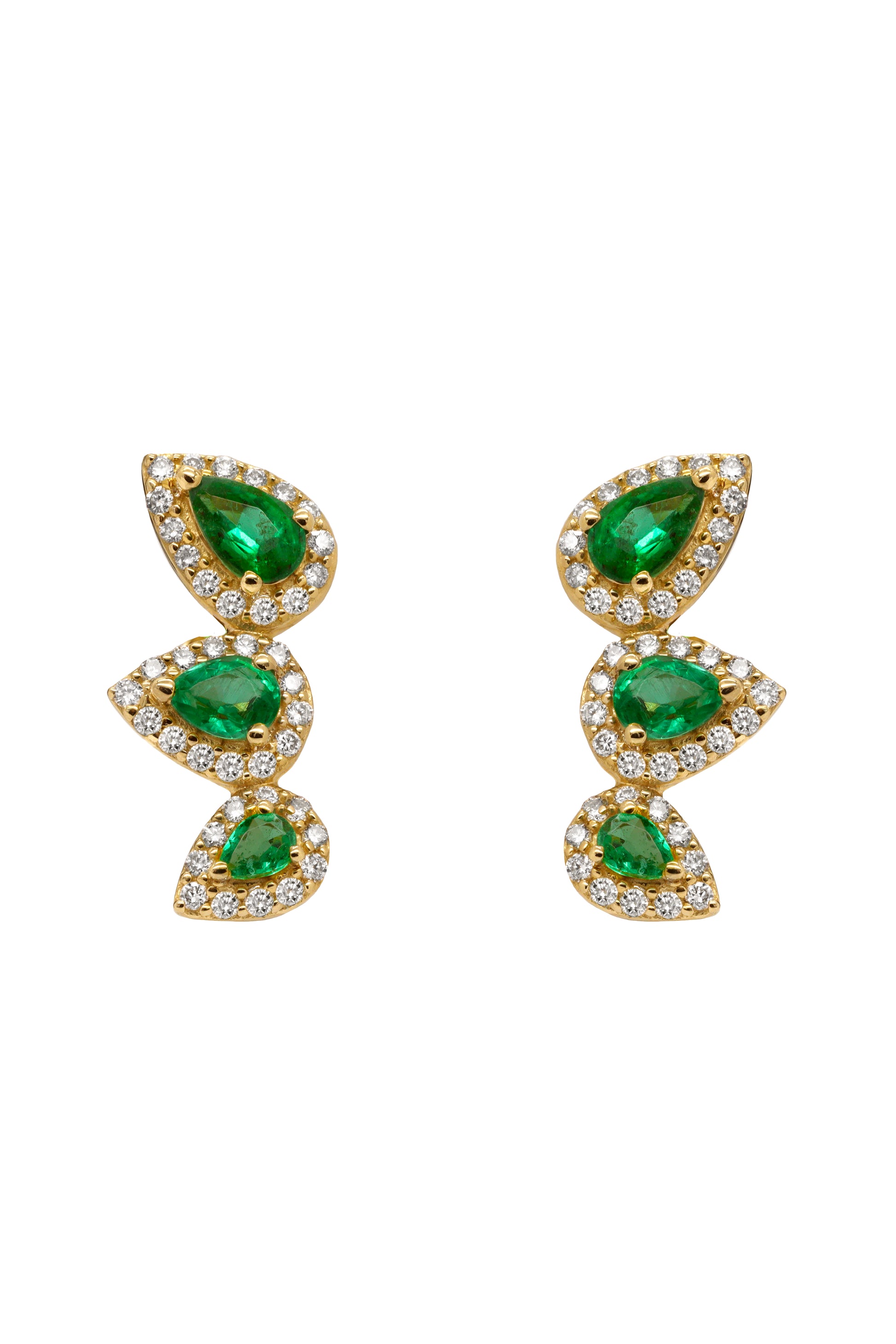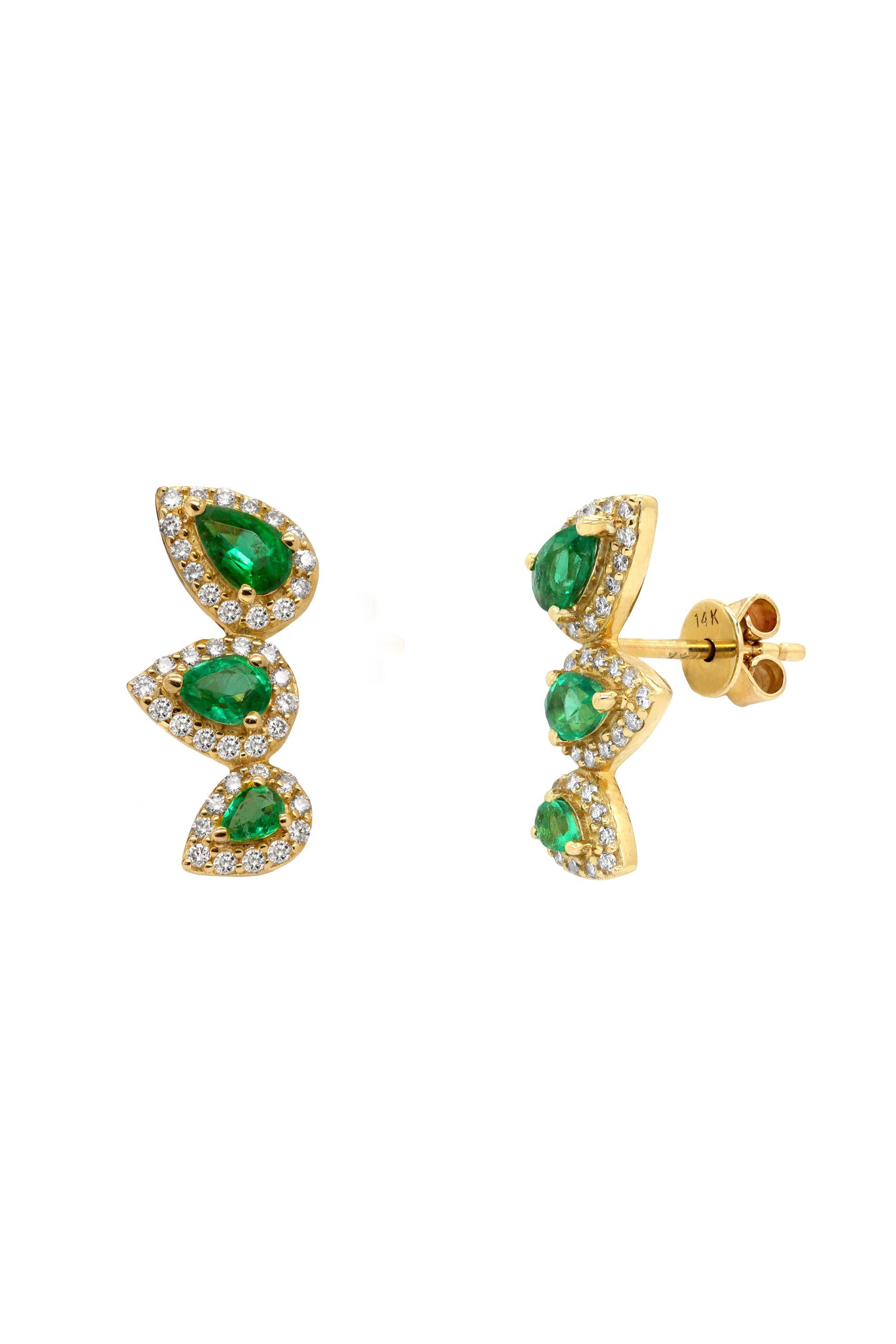 14k Yellow Gold Diamond Emerald Crawler Earrings