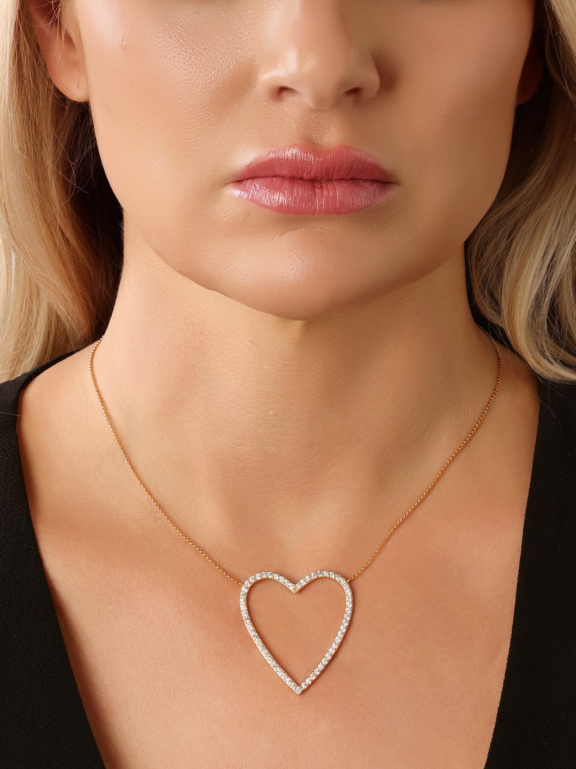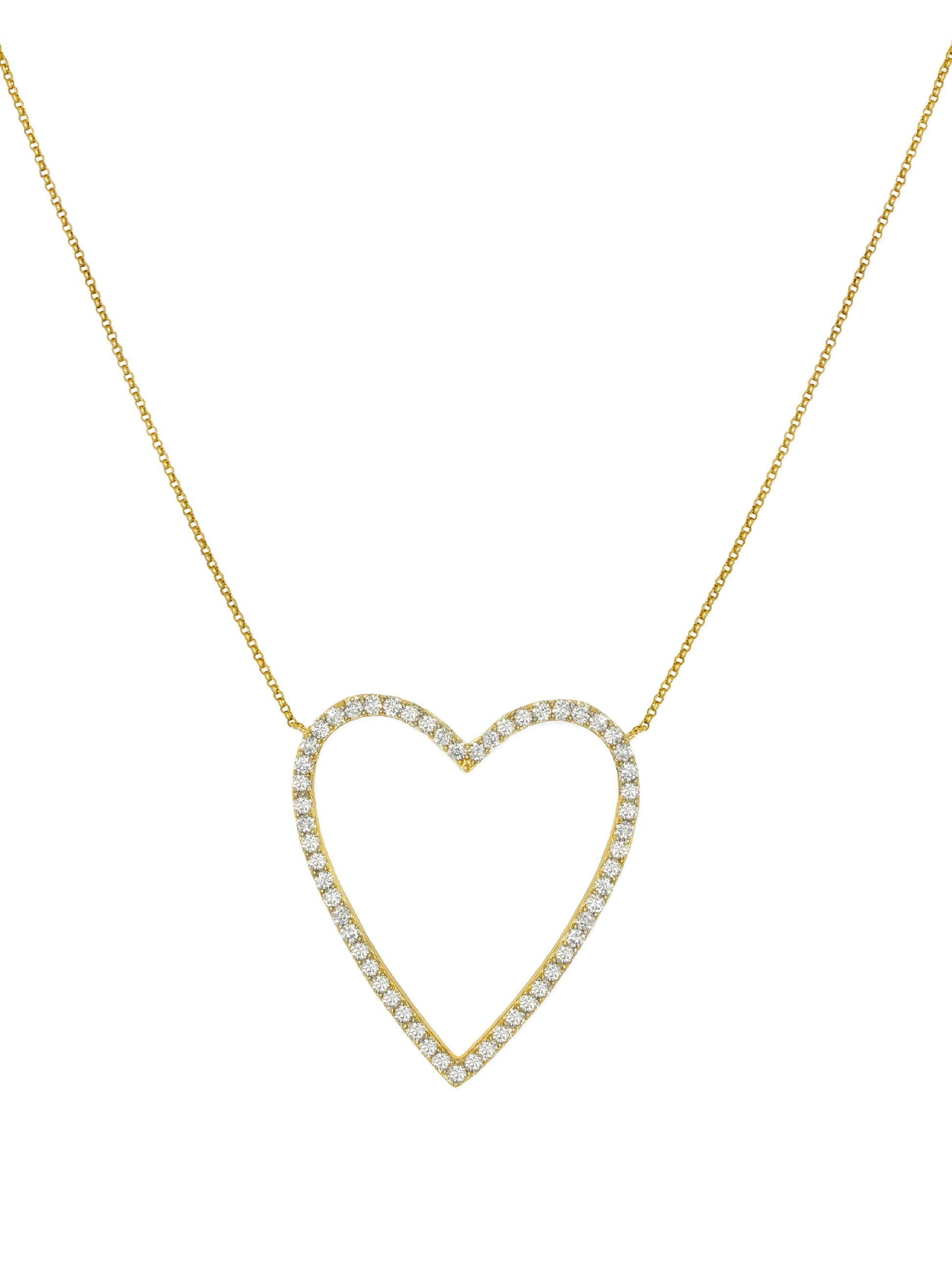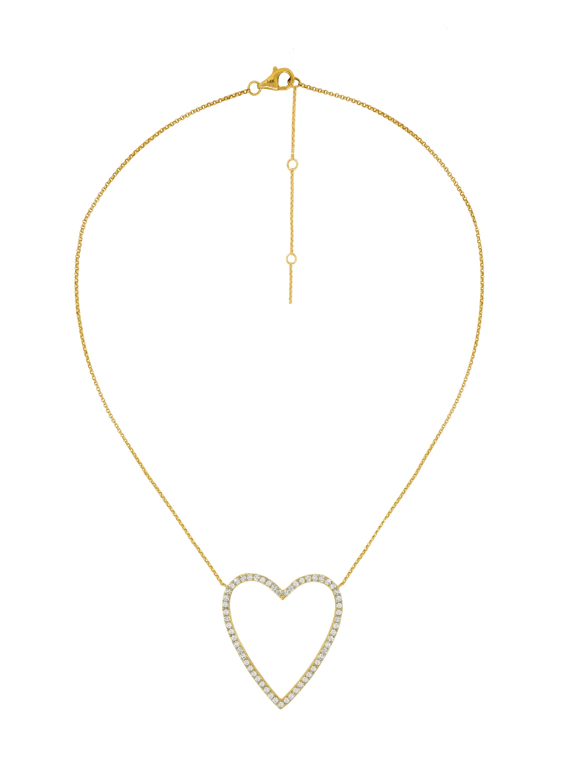 14k Yellow Gold Diamond Large Open Heart Necklace