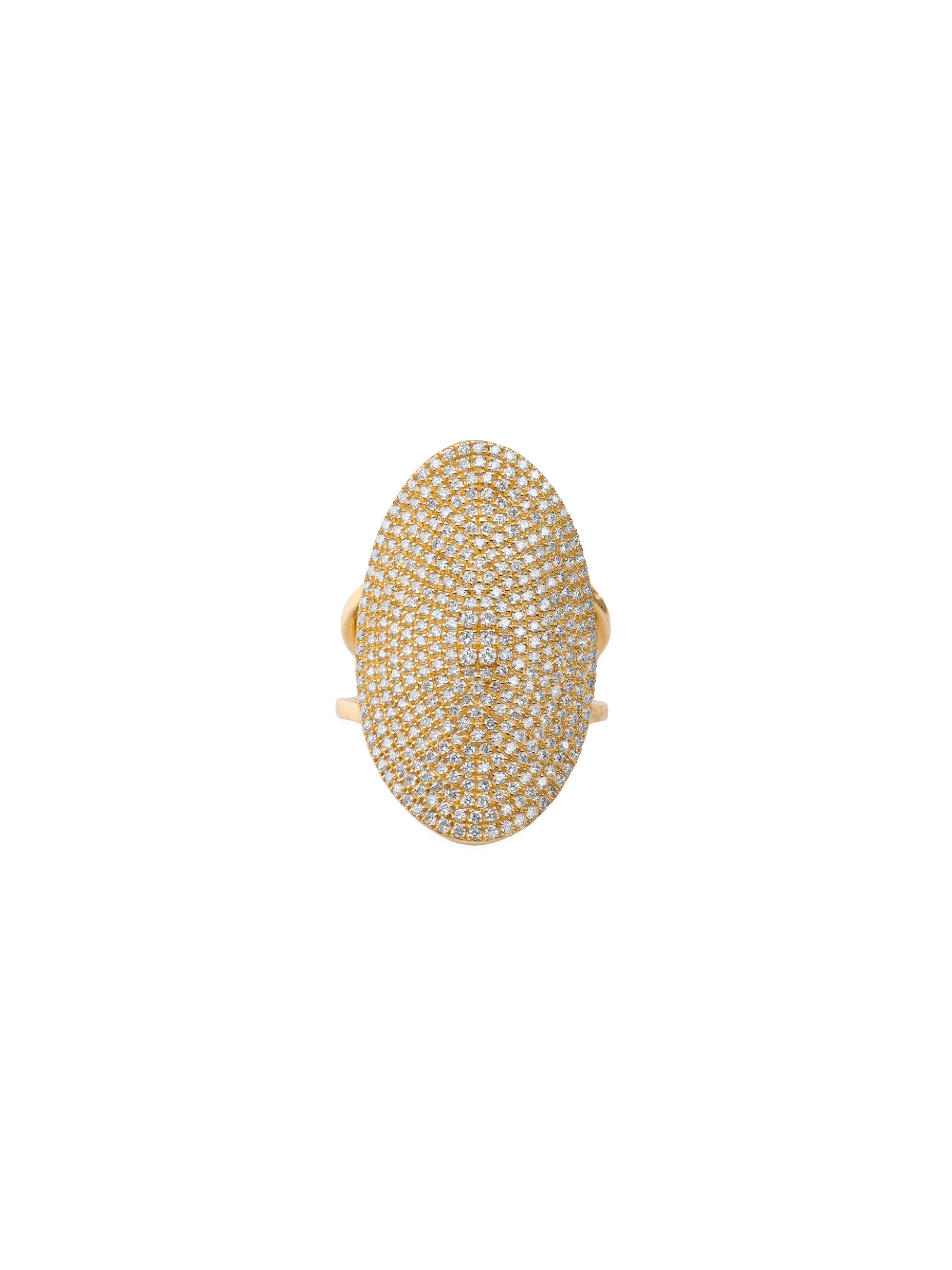 14k Yellow Gold Diamond Large Oval Pave Ring
