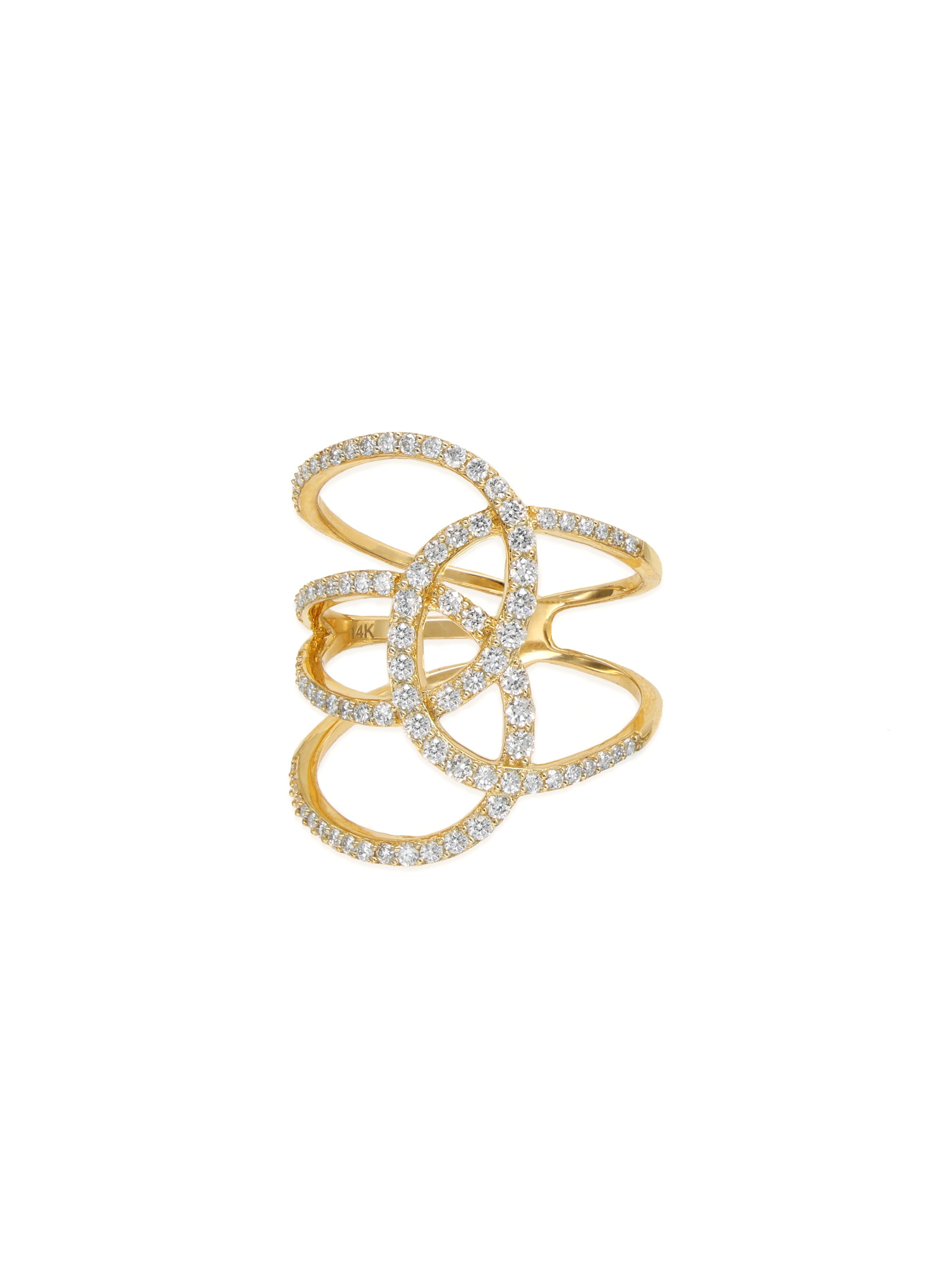 14k Yellow Gold Diamond Loop Crossover Ring