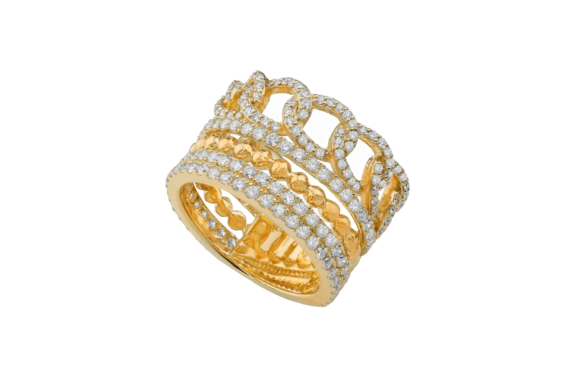 14k Yellow Gold Diamond Multi Fixed Stack Ring