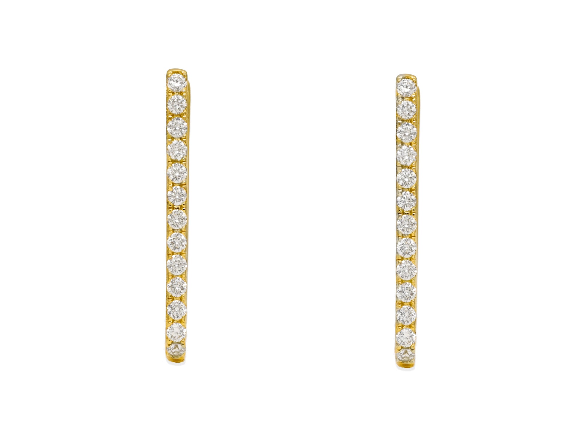 14k Yellow Gold Diamond Paperclip Hoop Earrings
