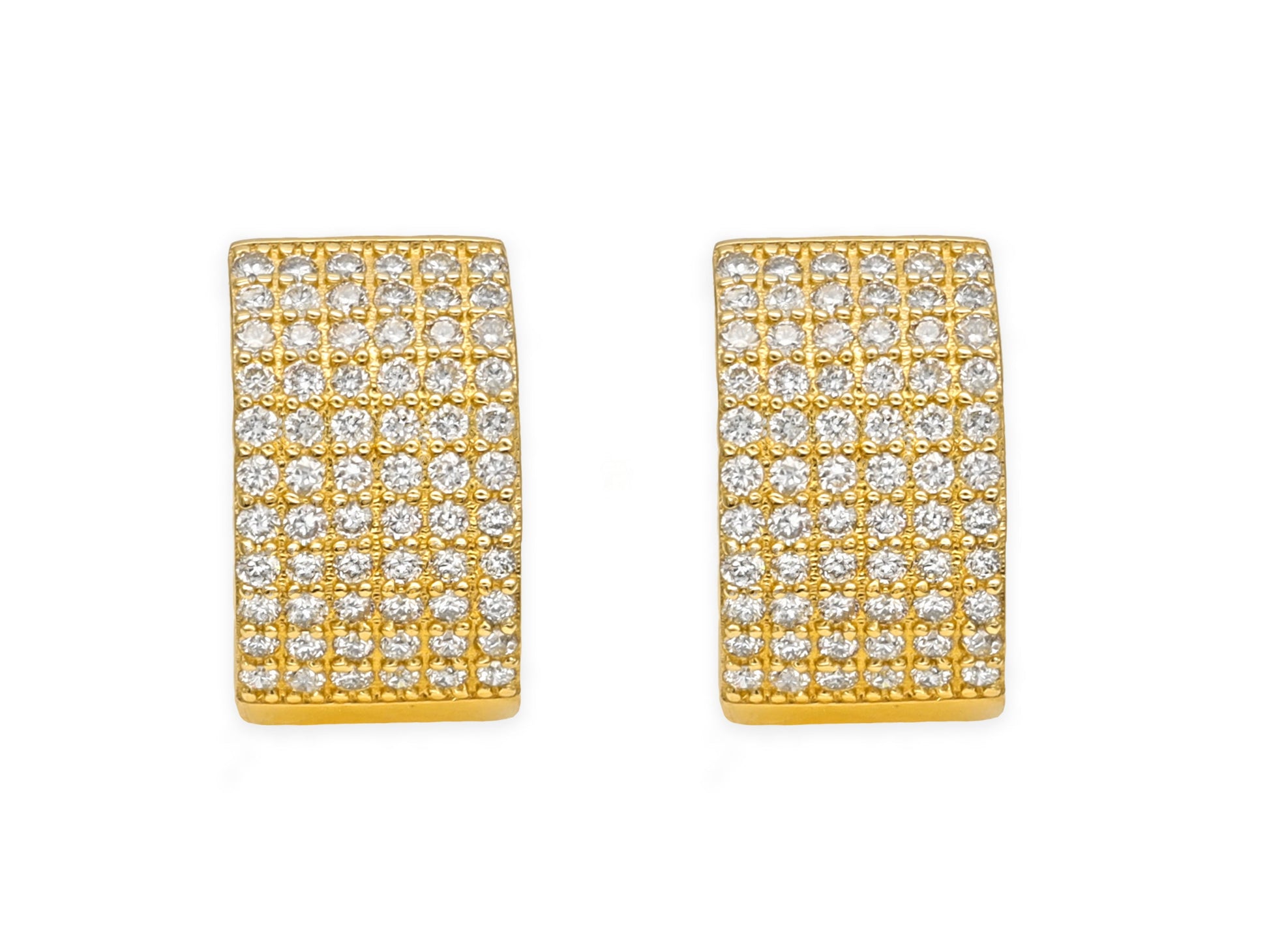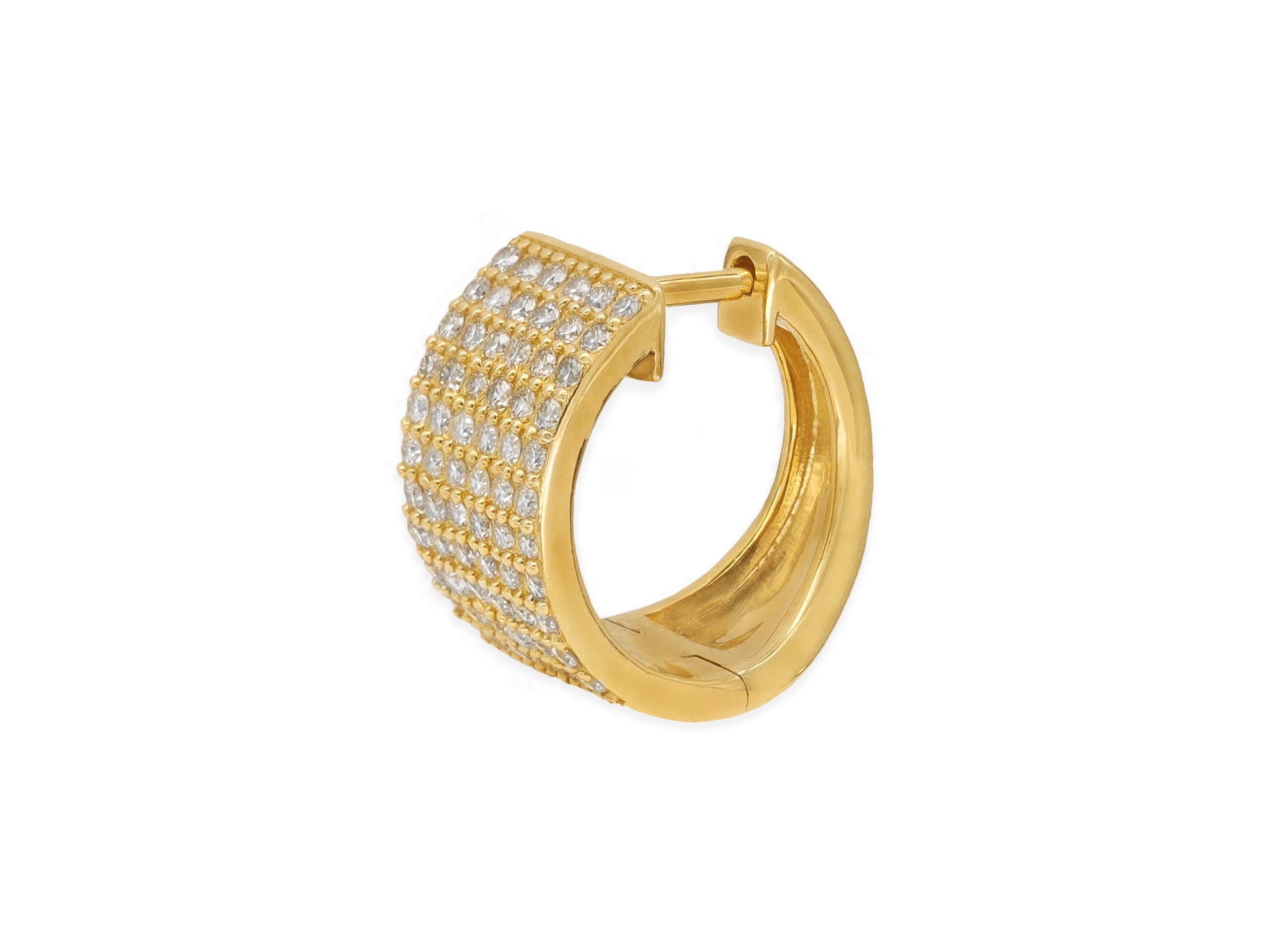 14k Yellow Gold Diamond Pave 6 Row Huggie Earrings