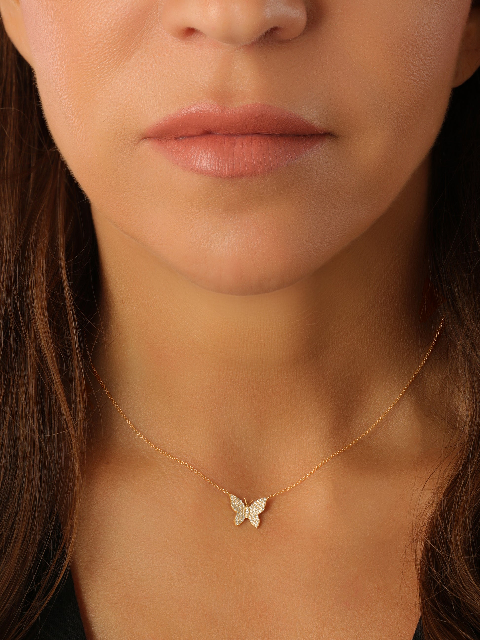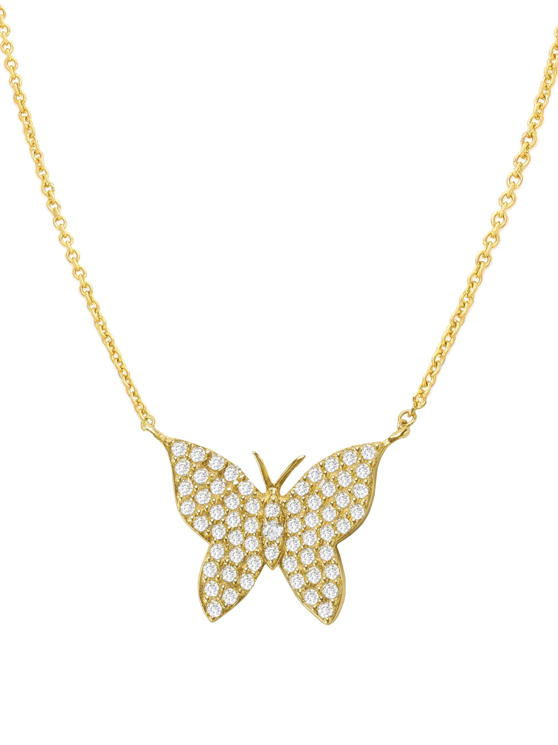 14k Yellow Gold Diamond Small Butterfly Necklace