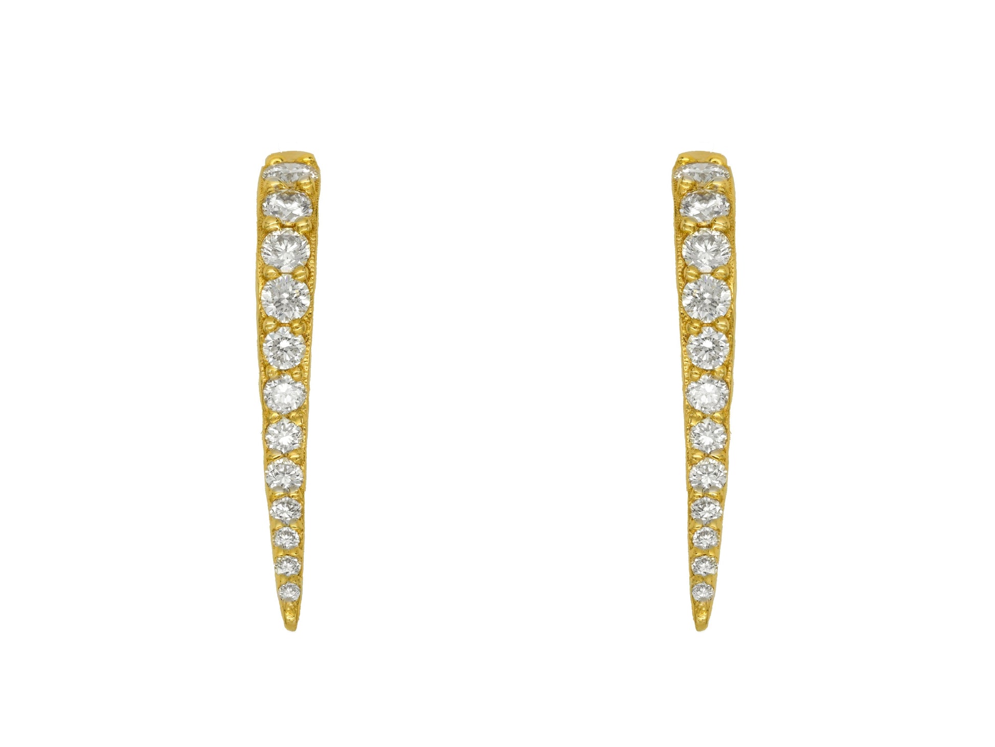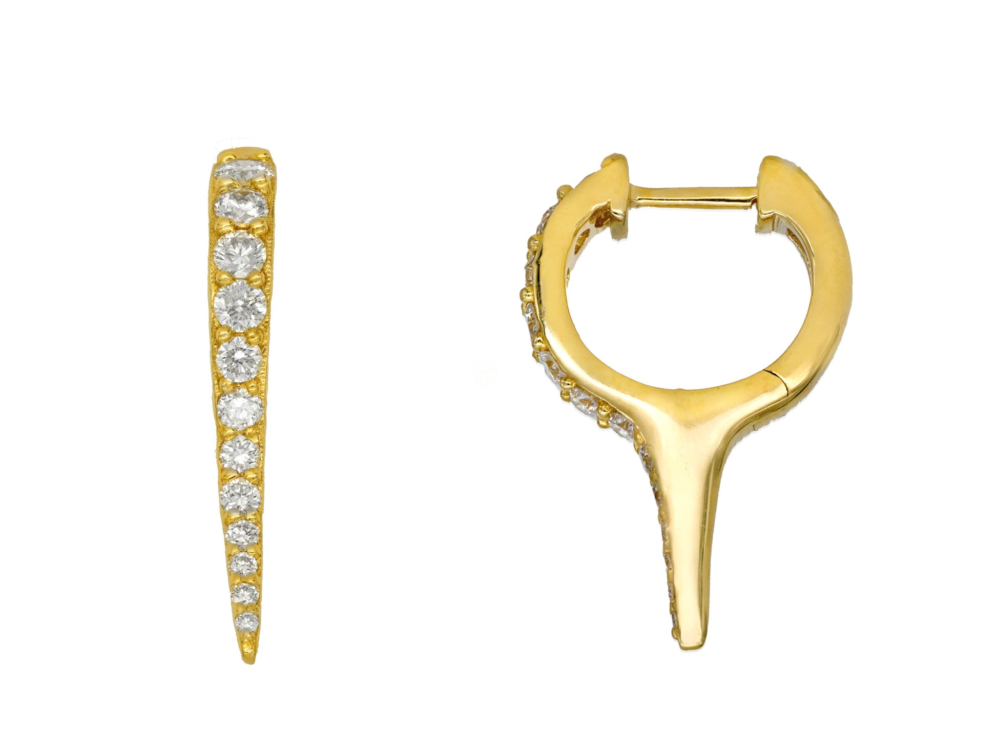 14k Yellow Gold Diamond Spike Huggie Earrings