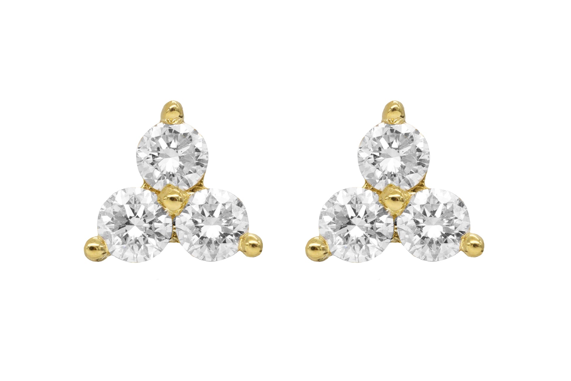 14k Yellow Gold Diamond Triangle Cluster Earrings