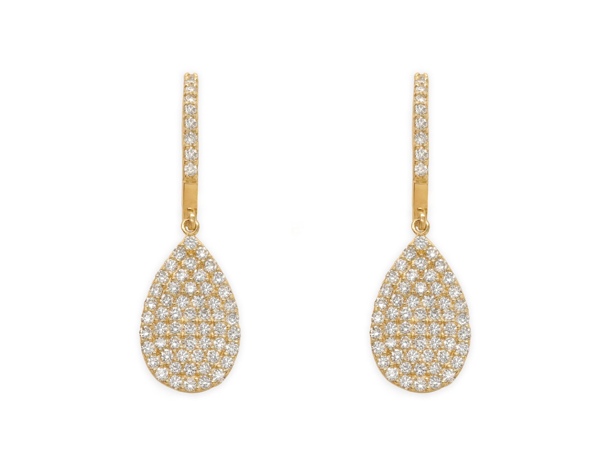 14k Yellow Gold Pave Diamond Teardrop Huggie Earrings