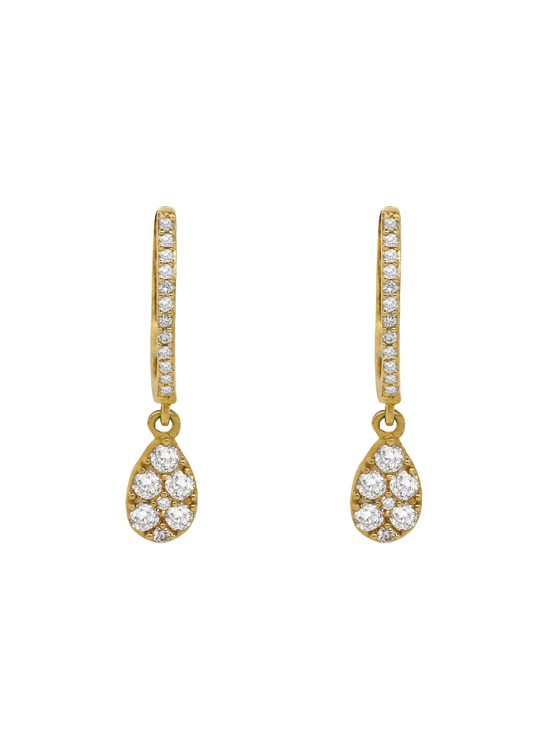 14k Yellow Gold Diamond Pear Dangle Huggie Earrings