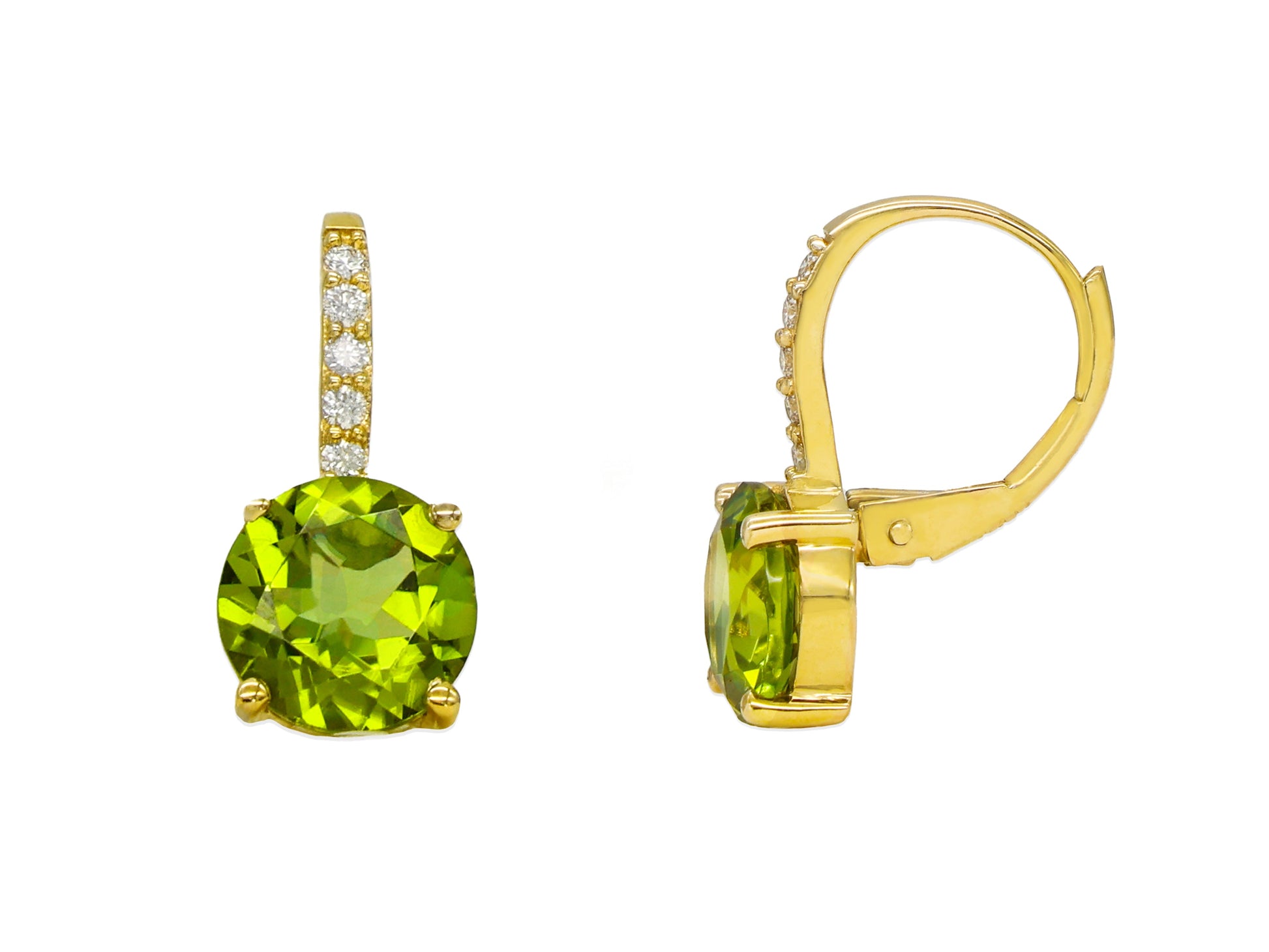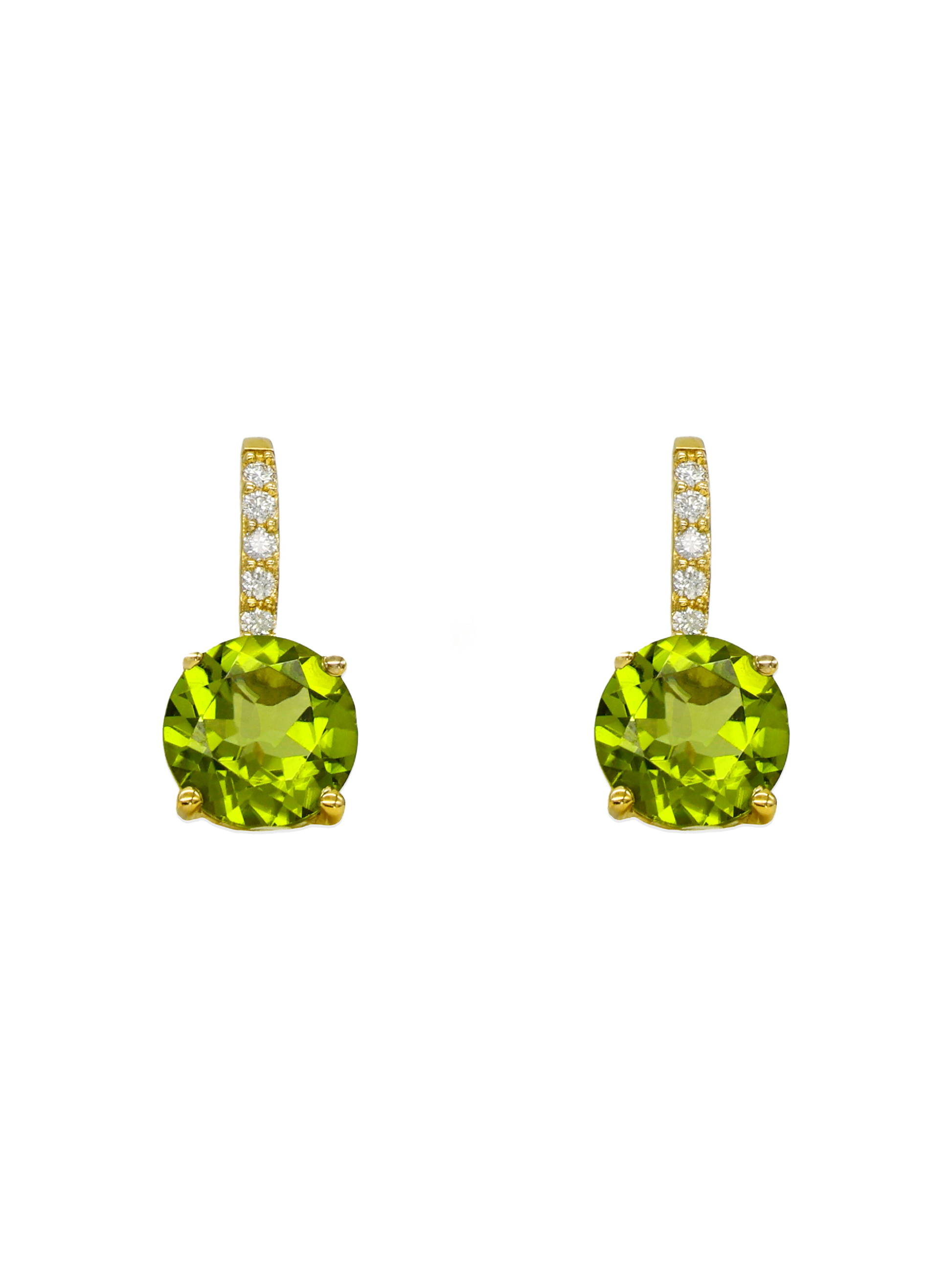 14k Yellow Gold Peridot Diamond Drop Earrings